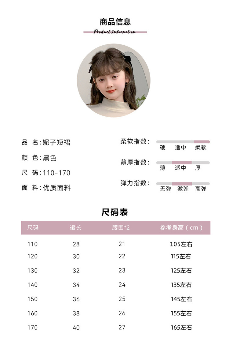 여자 모직 짧은 치마 블랙 JK 주름 치마 여자 초등학교 어린이 치마 2024 가을과 겨울 원피스스토어 가기