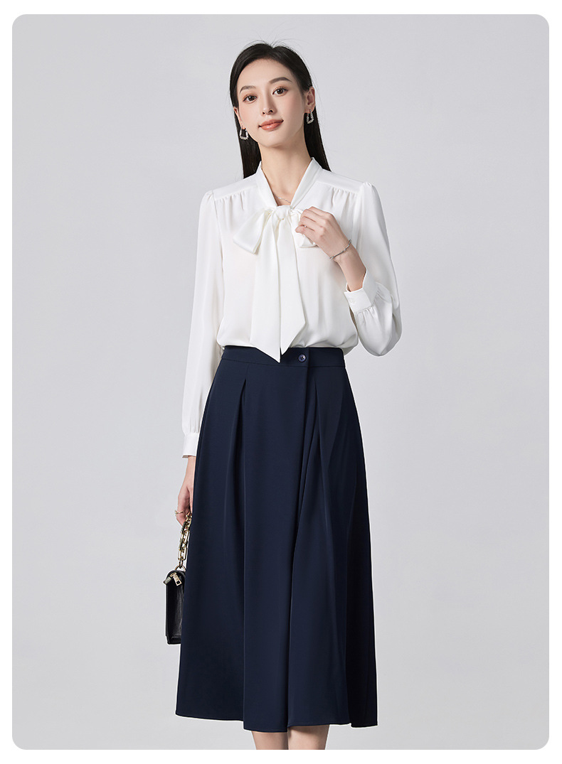 봄과 가을 뉴 쉬폰 셔츠 여성용 긴팔 프렌치 화이트 셔츠 레이스 업 활 우아한 우산 스커트 캐주얼 세트