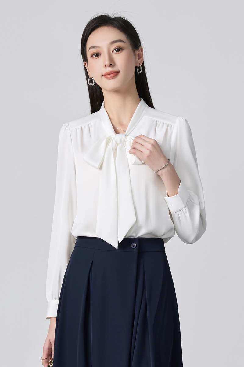 봄과 가을 뉴 쉬폰 셔츠 여성용 긴팔 프렌치 화이트 셔츠 레이스 업 활 우아한 우산 스커트 캐주얼 세트스토어 가기