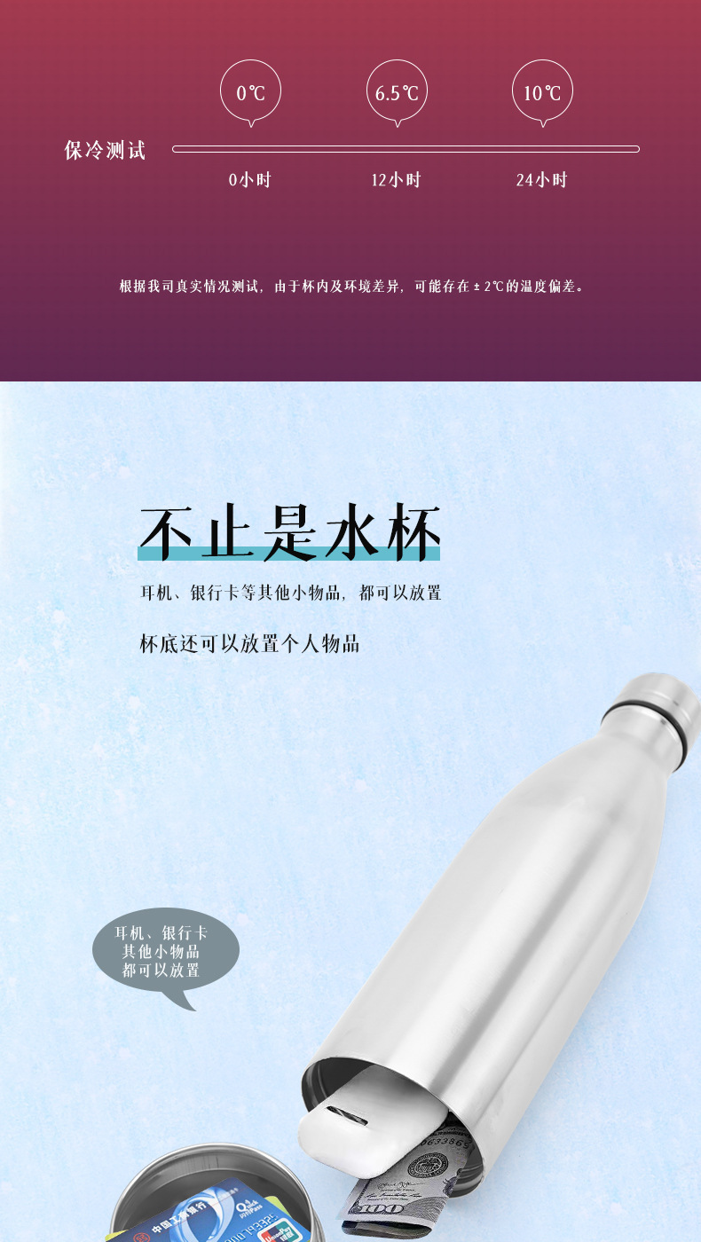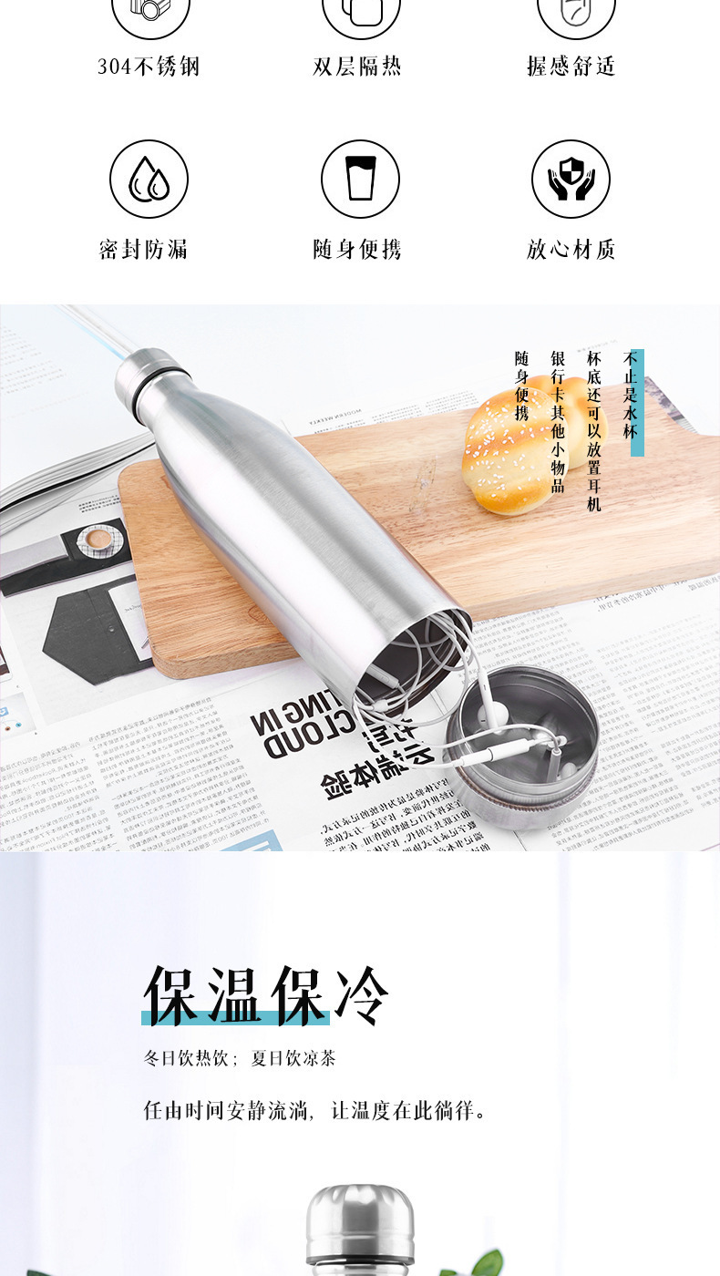 콜라 보온병 스포츠 물병 숨겨진 수납공간 304 스테인리스 스틸 바닥 탈착식 750ml 스포츠형스토어 가기