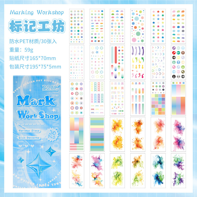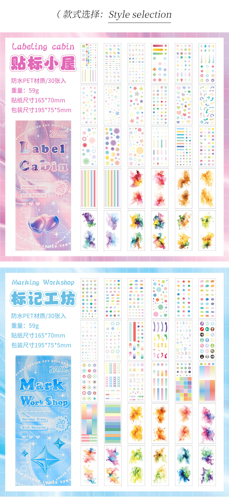 Yuezhen 라벨 스토리 컷 필름 스티커 핸드북 스티커북 크로스보더 인덱스 스티커 라벨 스티커 펫 핸드북 스티커북스토어 가기