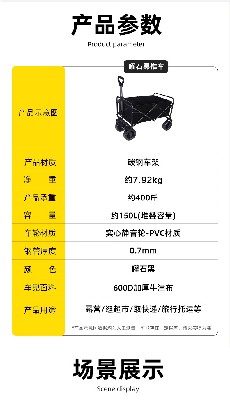 캠핑카 야외 접이식 트롤리 대형 캠프 자동차 피크닉 자동차 트레일러 캠핑 핸드 트롤리 스톨 트롤리