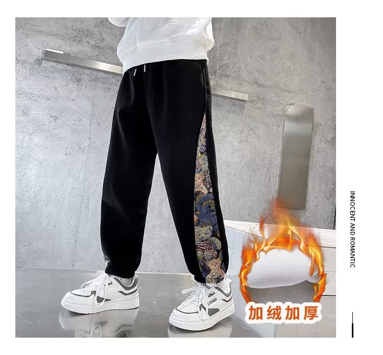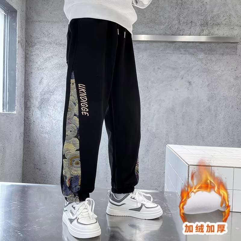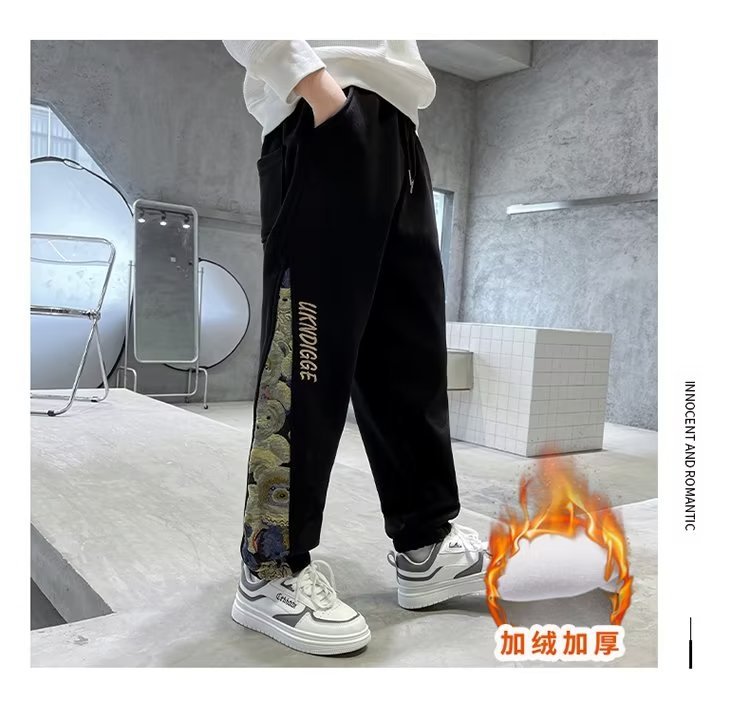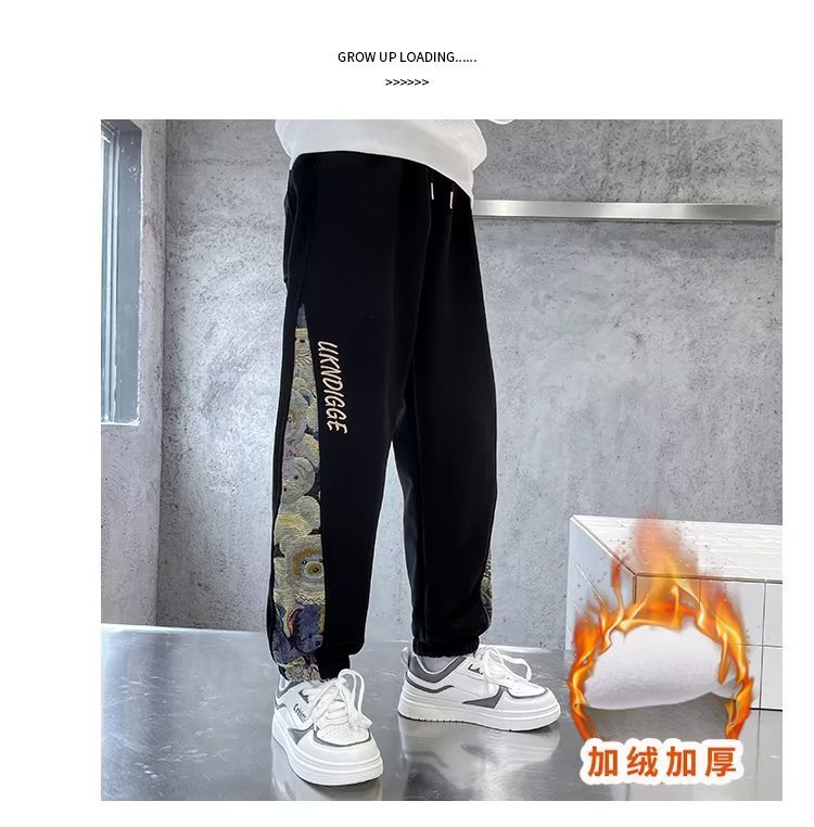 소년 바지 가을 기모 두꺼운 캐주얼 바지 2022 년 새 어린이 겨울 땀 트렌디스토어 가기