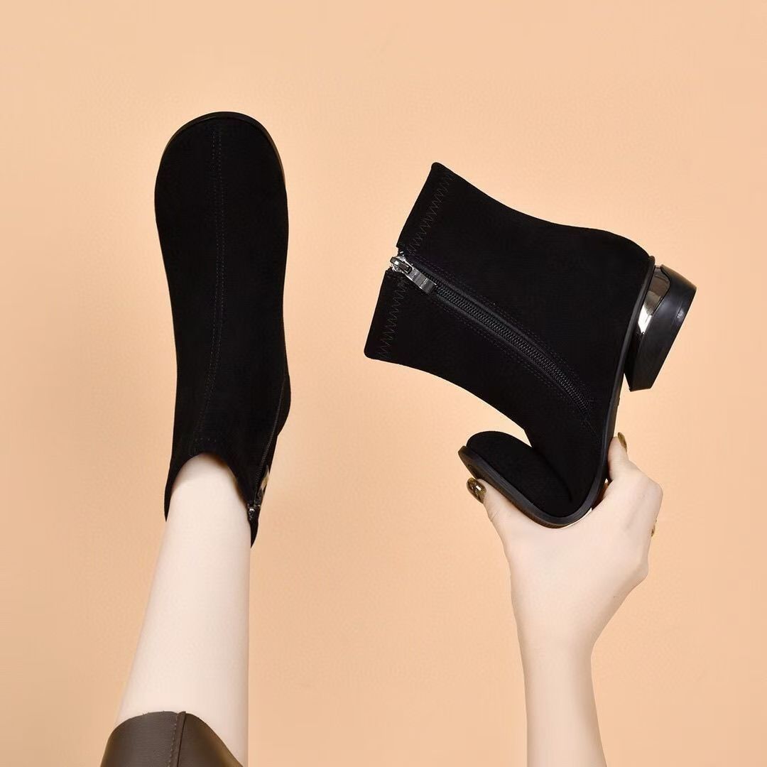 스웨이드 포인티드 우아한 발목 부츠 기모 올 매치 엄마 신발 소프트 솔 편안한 마틴 부츠 여성 2024 안티 슬립 패션 부츠스토어 가기