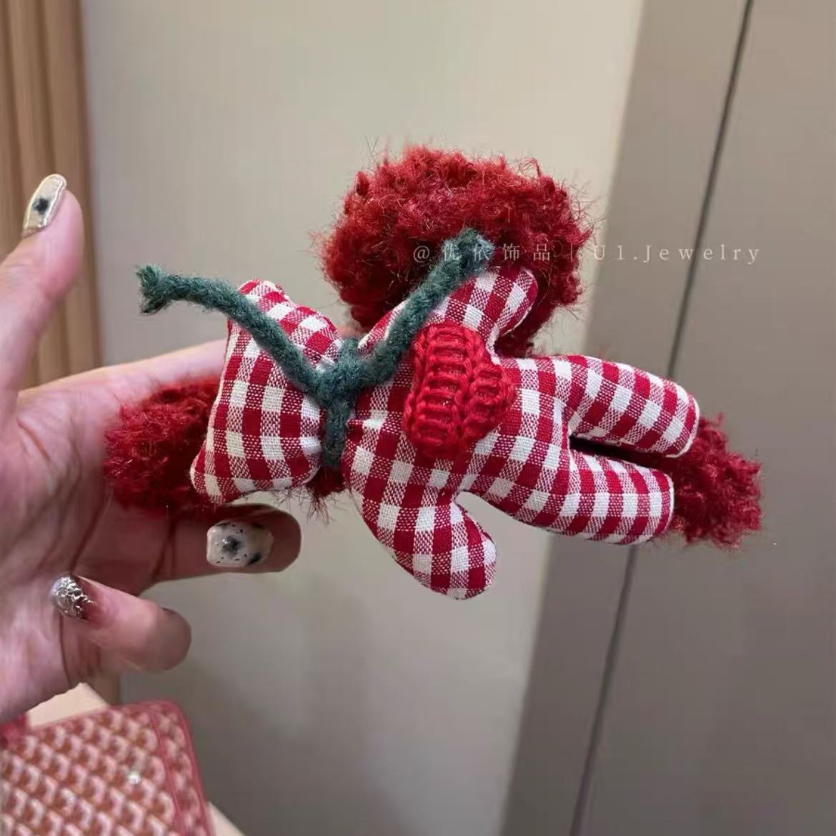 2024 새로운 레드 크리스마스 마오 마오 그랩 클립 상어 클립 양면 스타일 다른 만화 격자 무늬 곰 머리