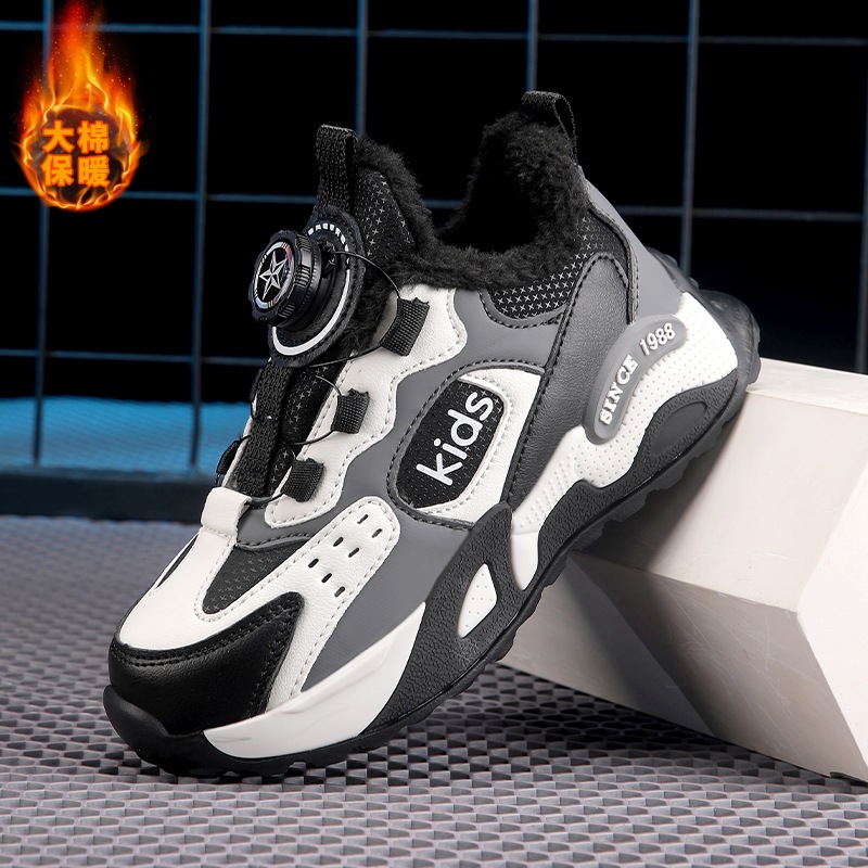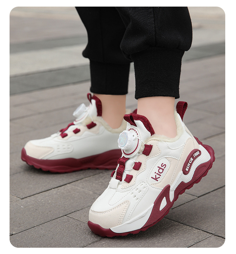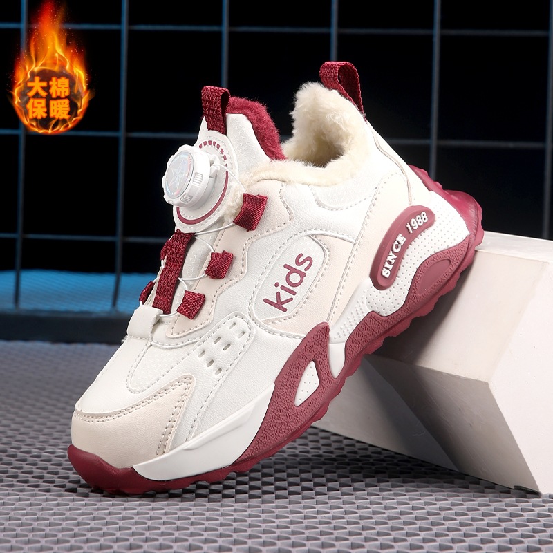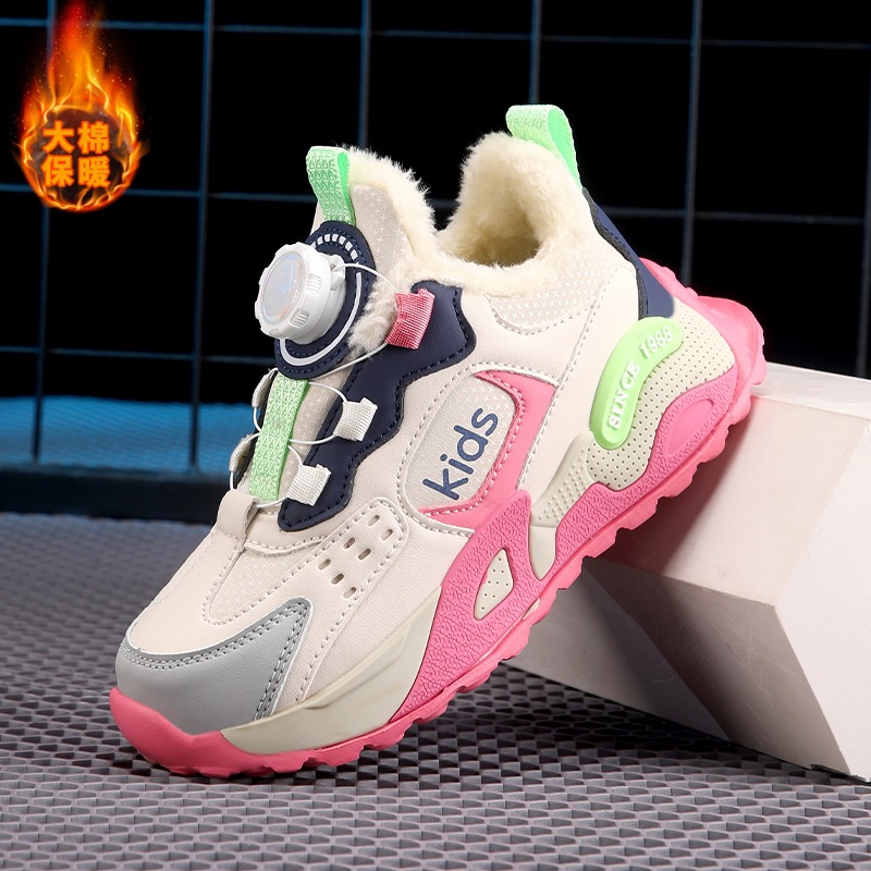 어린이 스포츠 신발 2024 새로운 스타일 소녀 겨울 벨벳 두꺼운 대형 면화 따뜻한 신발 중형 및 대형 어린이 소년 운동화