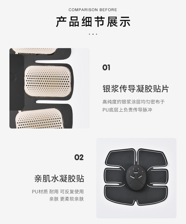 • 블랙 | 소뿔 복근 패치 1개 + 팔 패치 2개 + 엉덩이 패치 1개 (충전식)