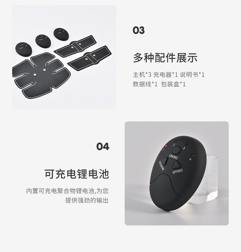 • 블랙 | 복부 패치 1 + 팔 2 + 엉덩이 패치 1 (충전식 버전)