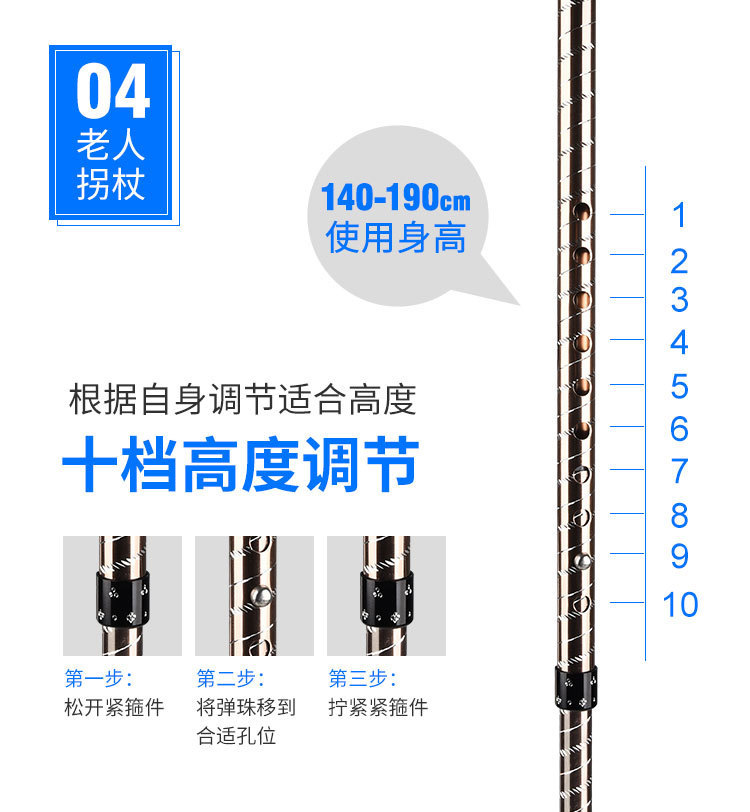 노인을 위한 Chaoyi 널링 스마트 단일 발 지팡이, 조명이 있는 특수 알루미늄 합금 미끄럼 방지 지팡이, 텔레스코픽 조절 지팡이