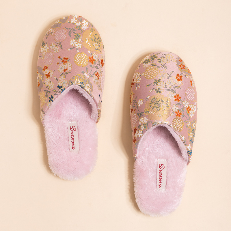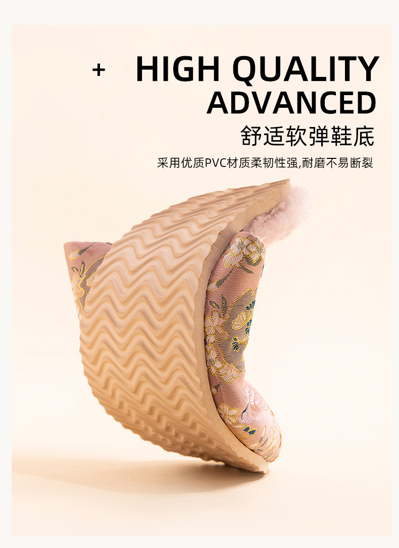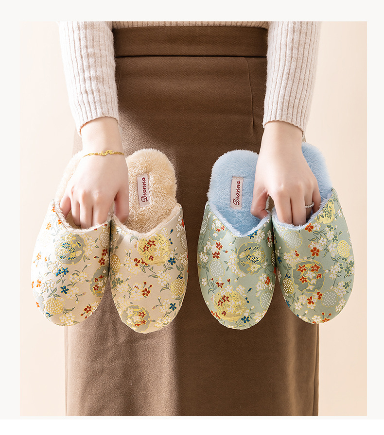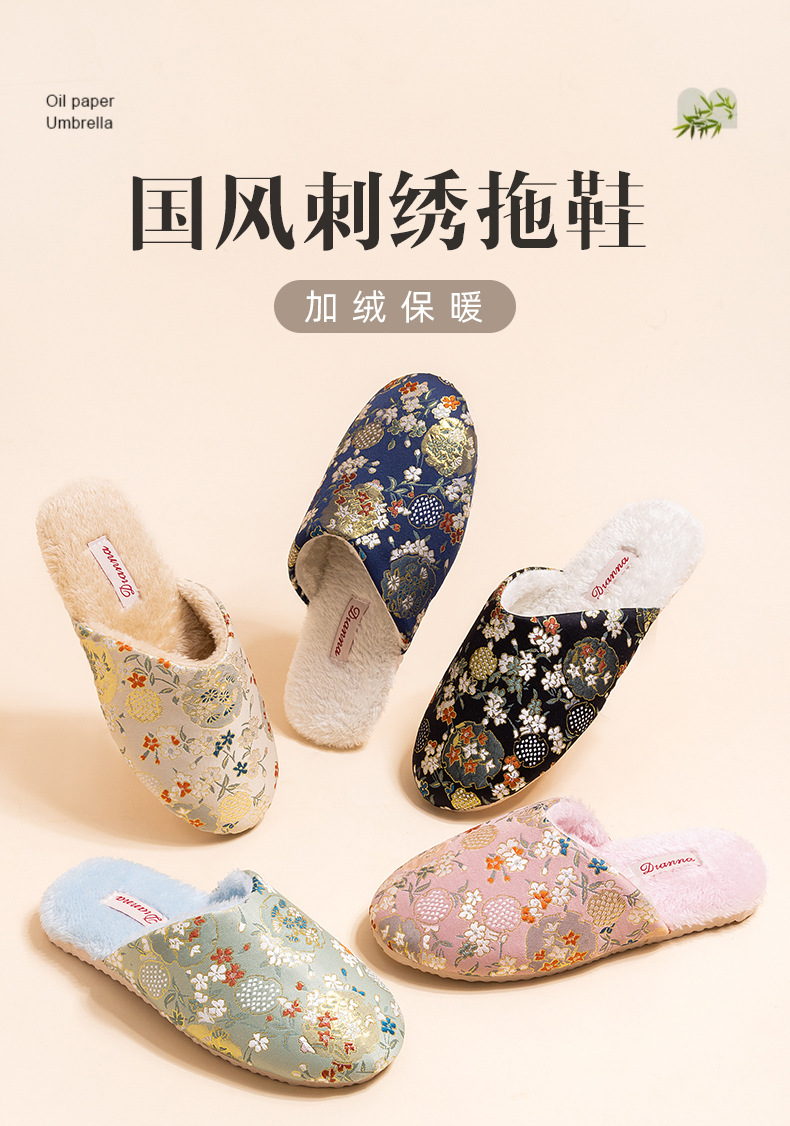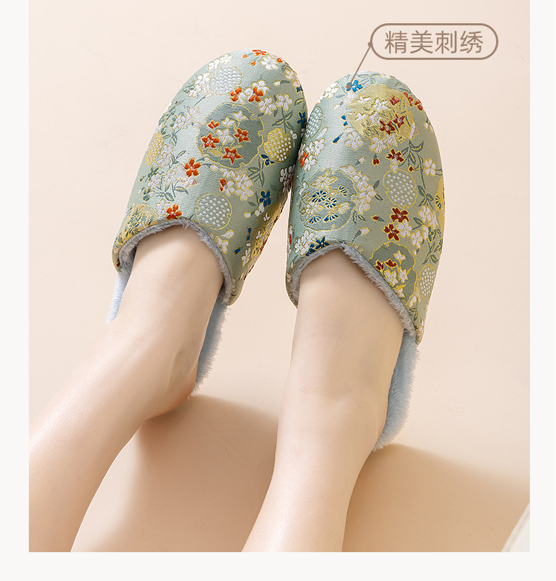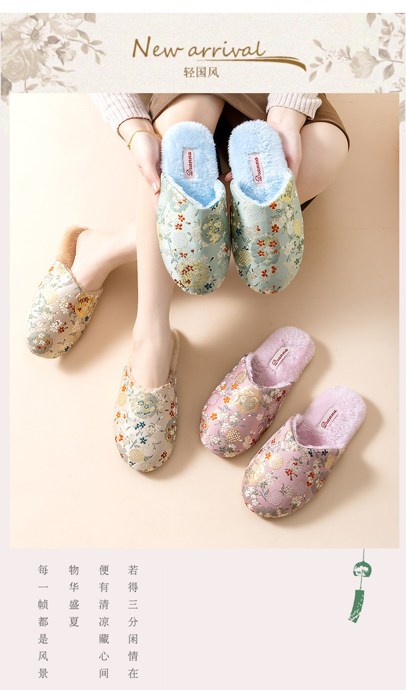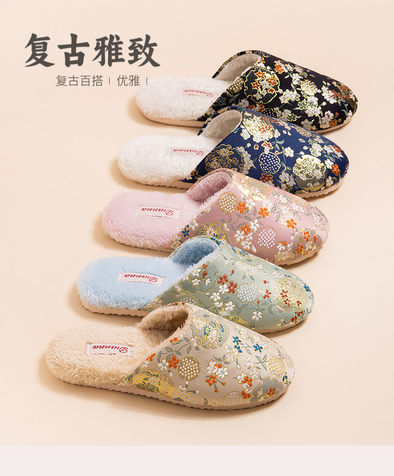 커플 가을과 겨울 새틴 국가 스타일 자수 봉제 슬리퍼 홈 따뜻한 면 슬리퍼 남성과 여성