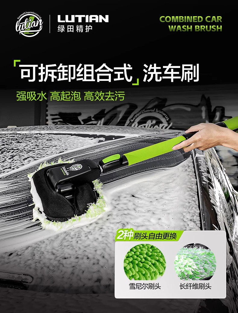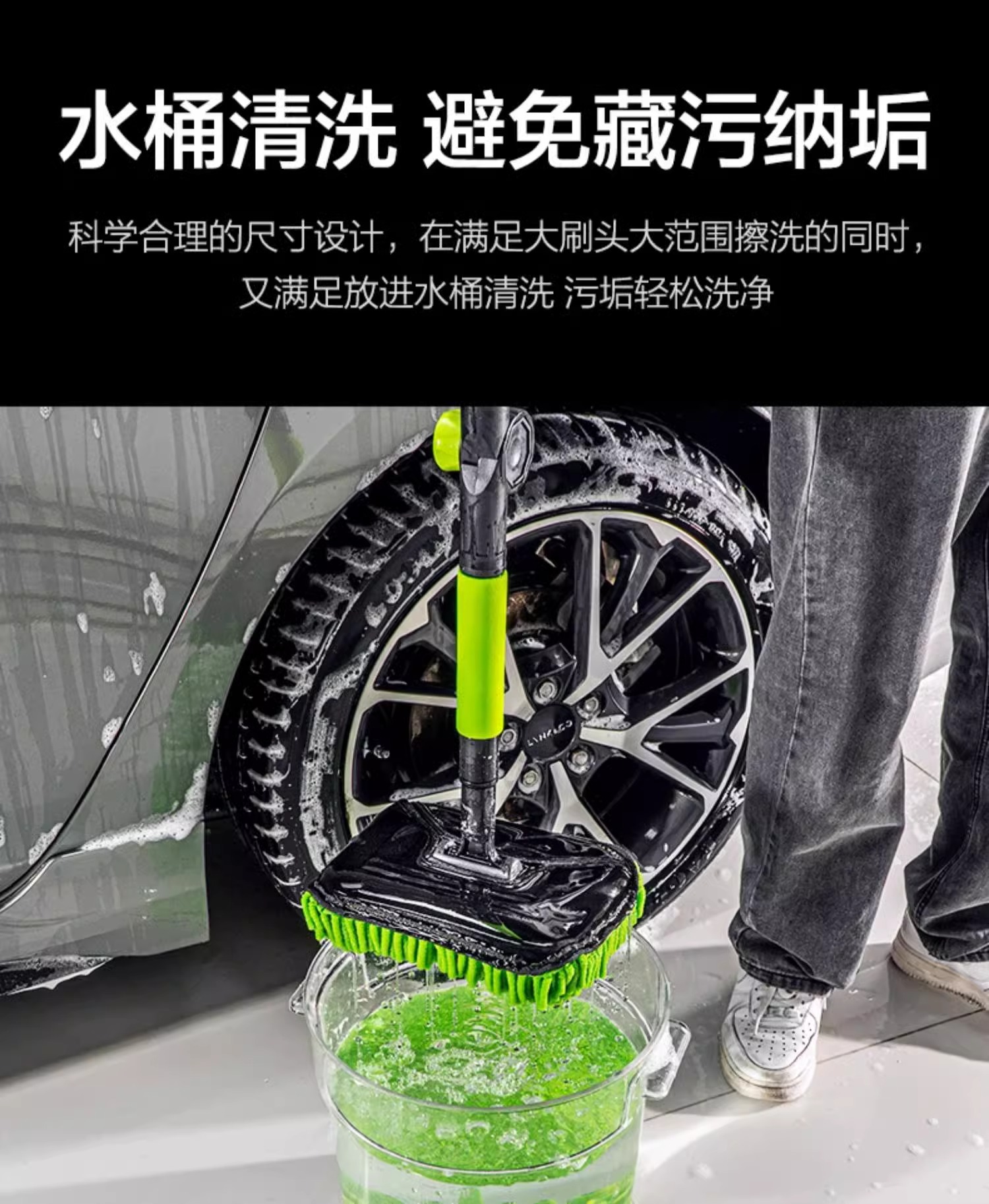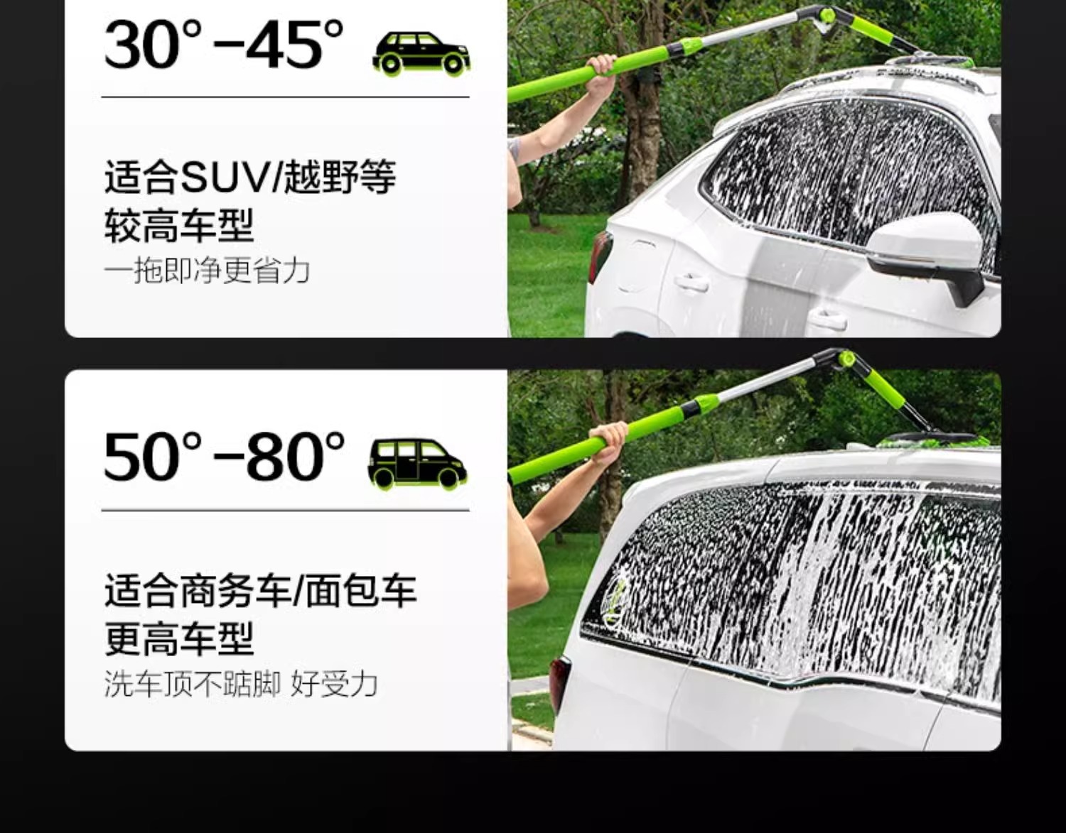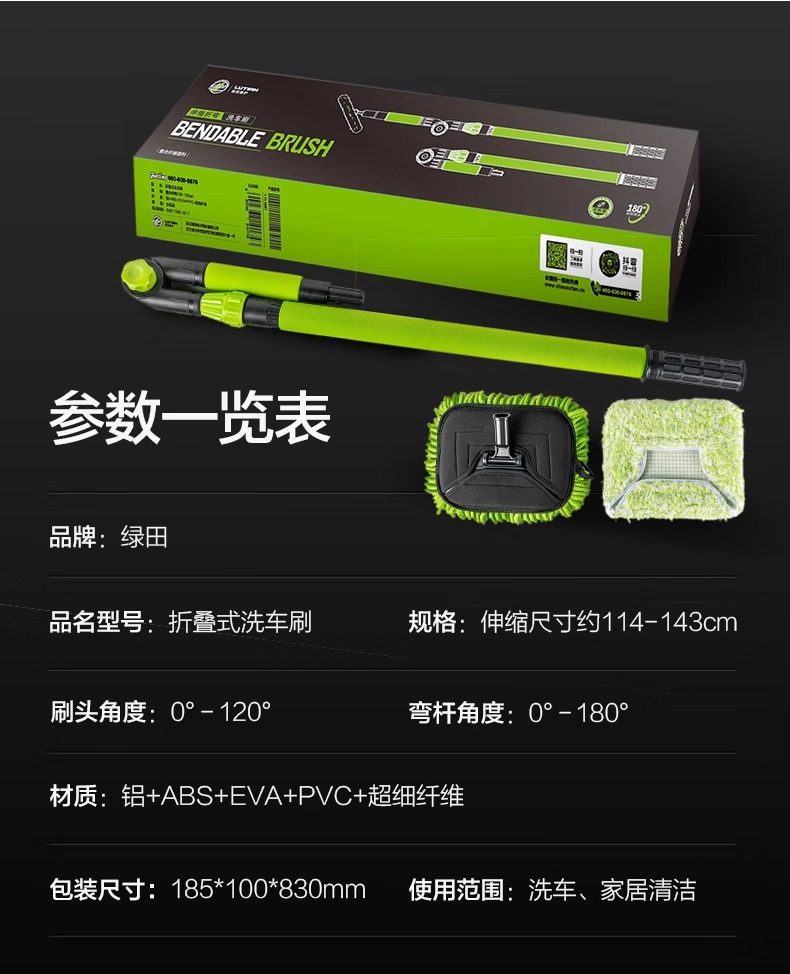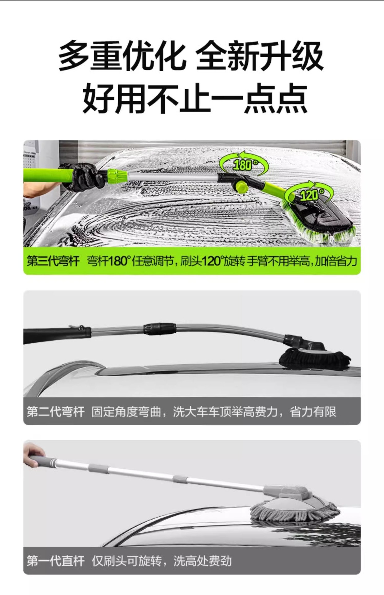 그린필드 특수 접이식 세차용 브러시, 3단 접이식, 부드러운 솔로 세차, 자동차 도색 손상 없음, 탈부착 및 굽힘 가능