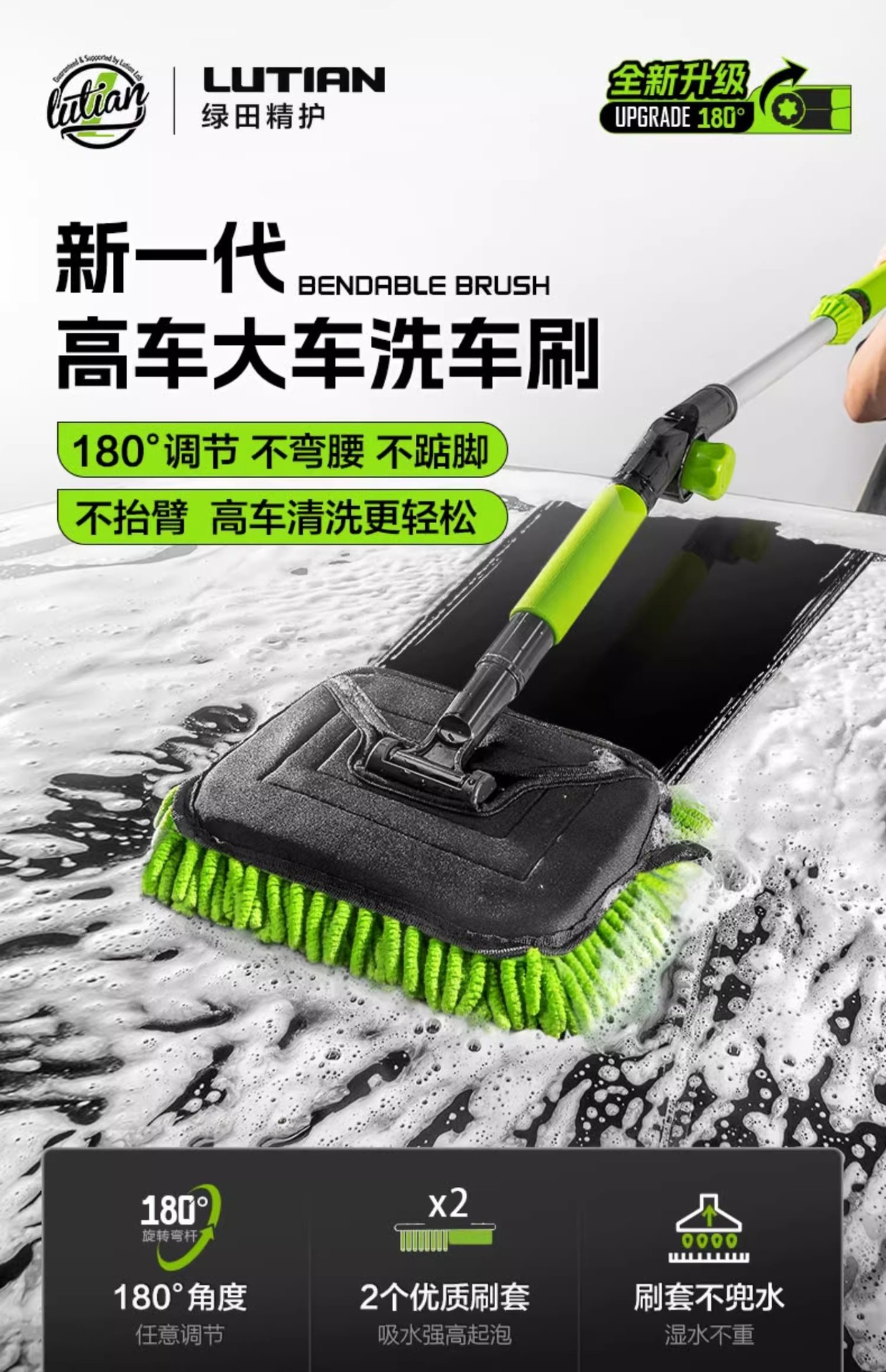 그린필드 특수 접이식 세차용 브러시, 3단 접이식, 부드러운 솔로 세차, 자동차 도색 손상 없음, 탈부착 및 굽힘 가능스토어 가기