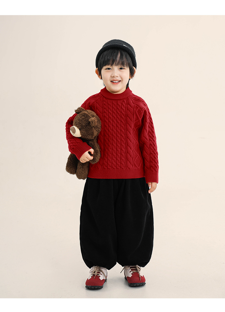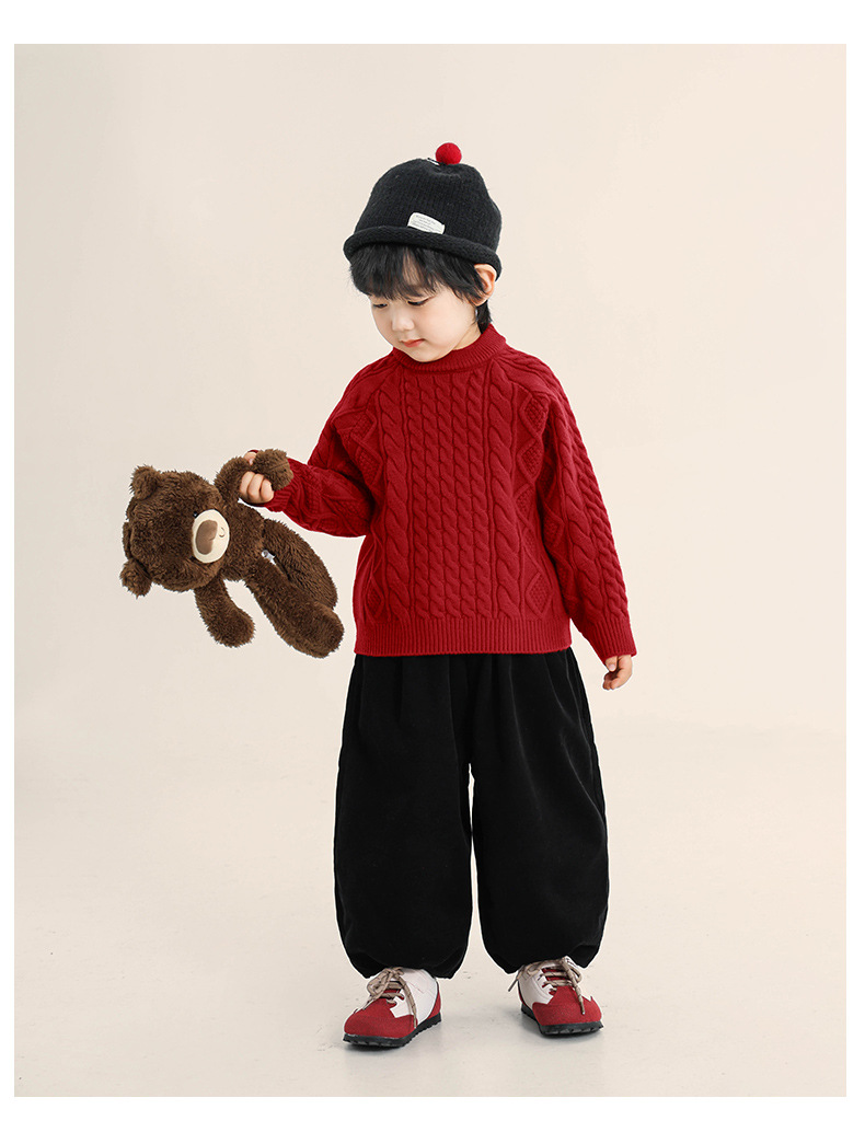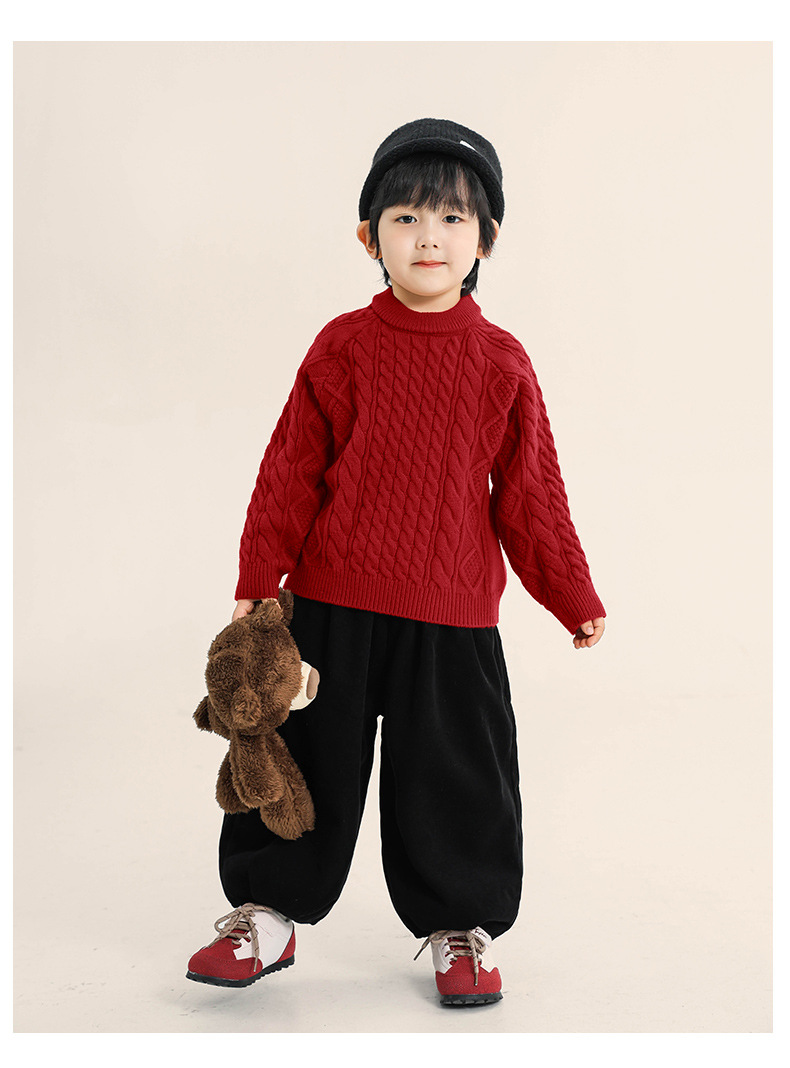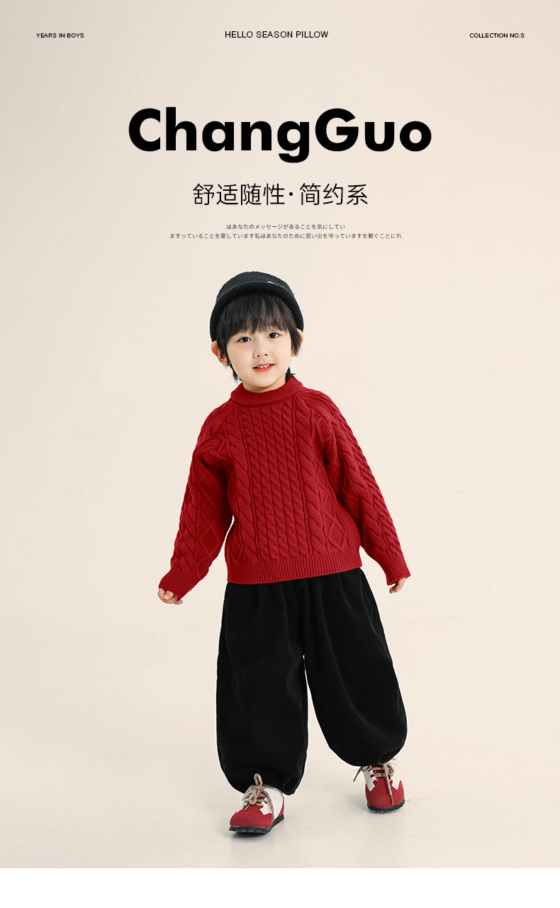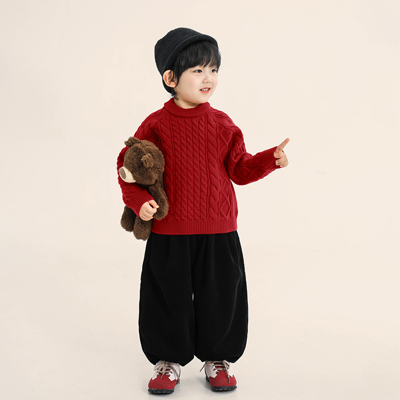 Changguo 아동복 소년 스웨터 겨울 어린이 두꺼운 축제 빨간 스웨터 옷 어린이 및 어린이