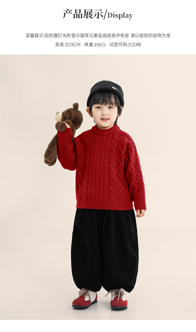 Changguo 아동복 소년 스웨터 겨울 어린이 두꺼운 축제 빨간 스웨터 옷 어린이 및 어린이스토어 가기