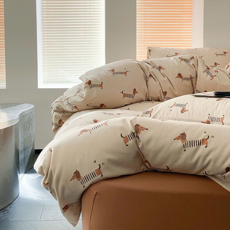 부드럽고 크림 컬러 니트 Tianzhu 코튼 알몸 잠자는 침구 퓨어 코튼 코튼 신강 긴 스테이플 코튼 4 피스 세트스토어 가기