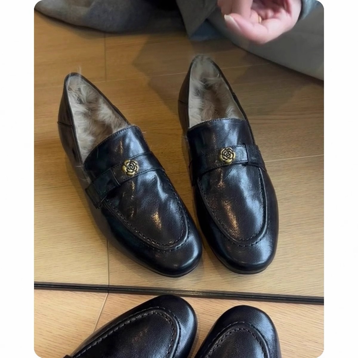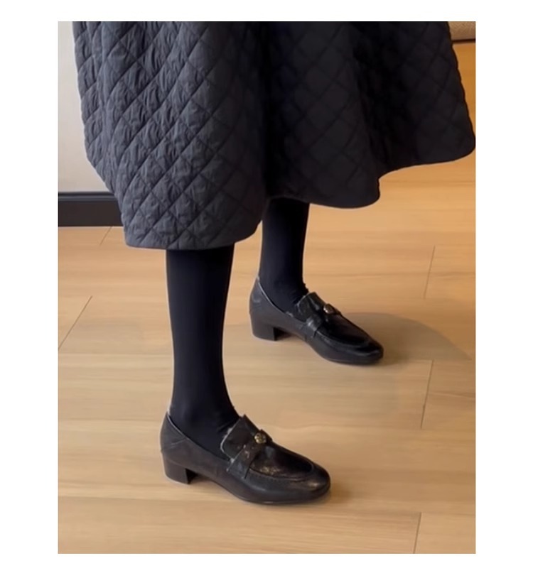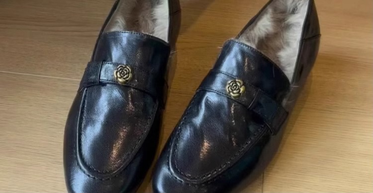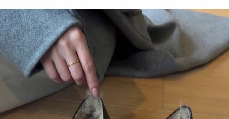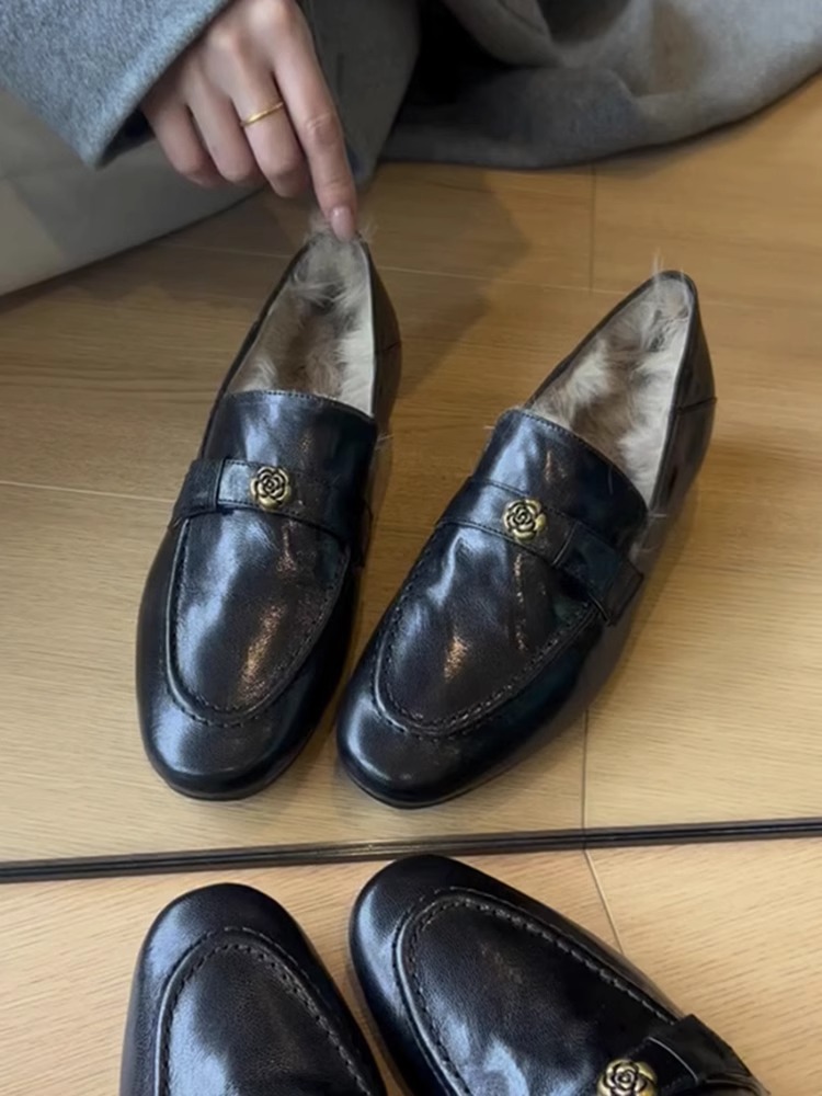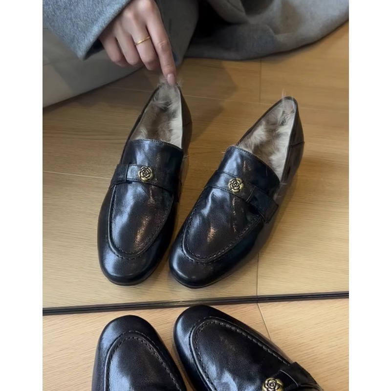 란 캐비닛 ~ 토끼 모피 ~ 행운의 신발 여성의 가을과 겨울 새로운 두꺼운 발 뒤꿈치 프랑스 단일 신발 조커 기모 따뜻한 면화 작은 가죽 신발