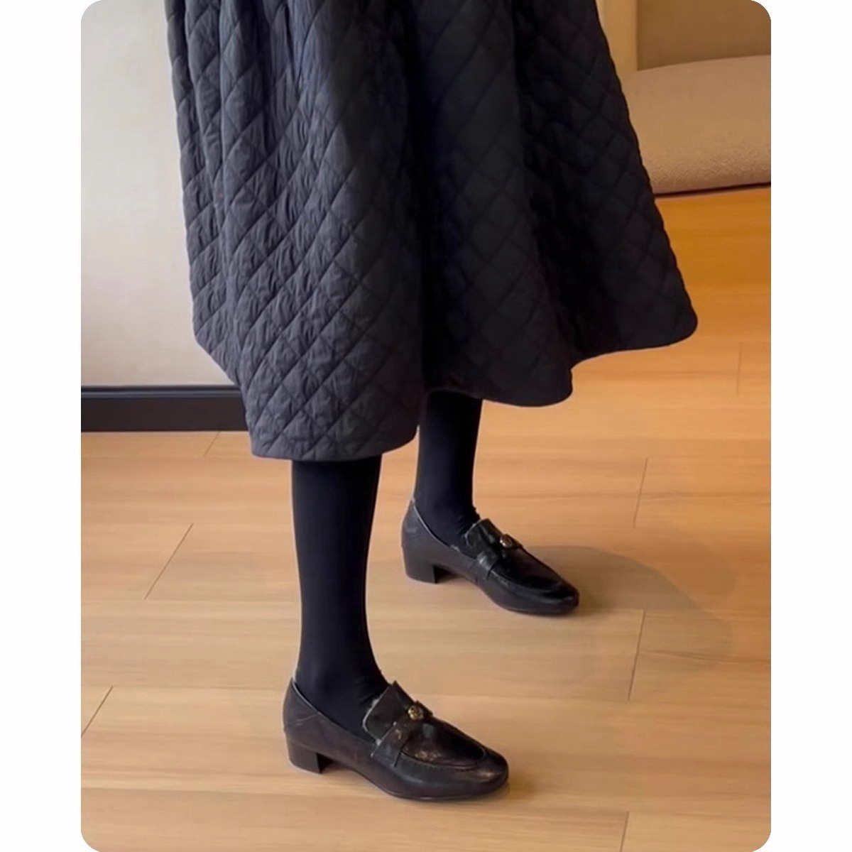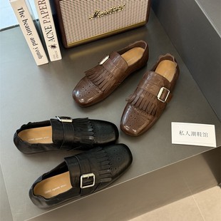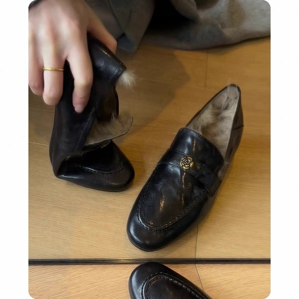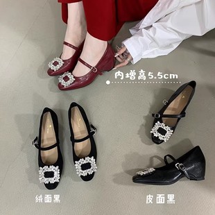 란 캐비닛 ~ 토끼 모피 ~ 행운의 신발 여성의 가을과 겨울 새로운 두꺼운 발 뒤꿈치 프랑스 단일 신발 조커 기모 따뜻한 면화 작은 가죽 신발