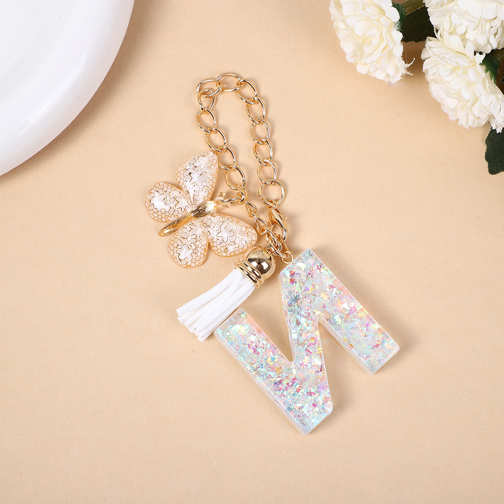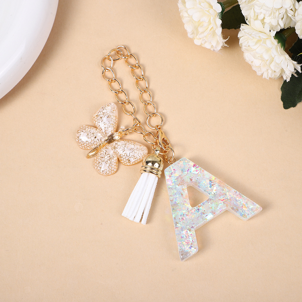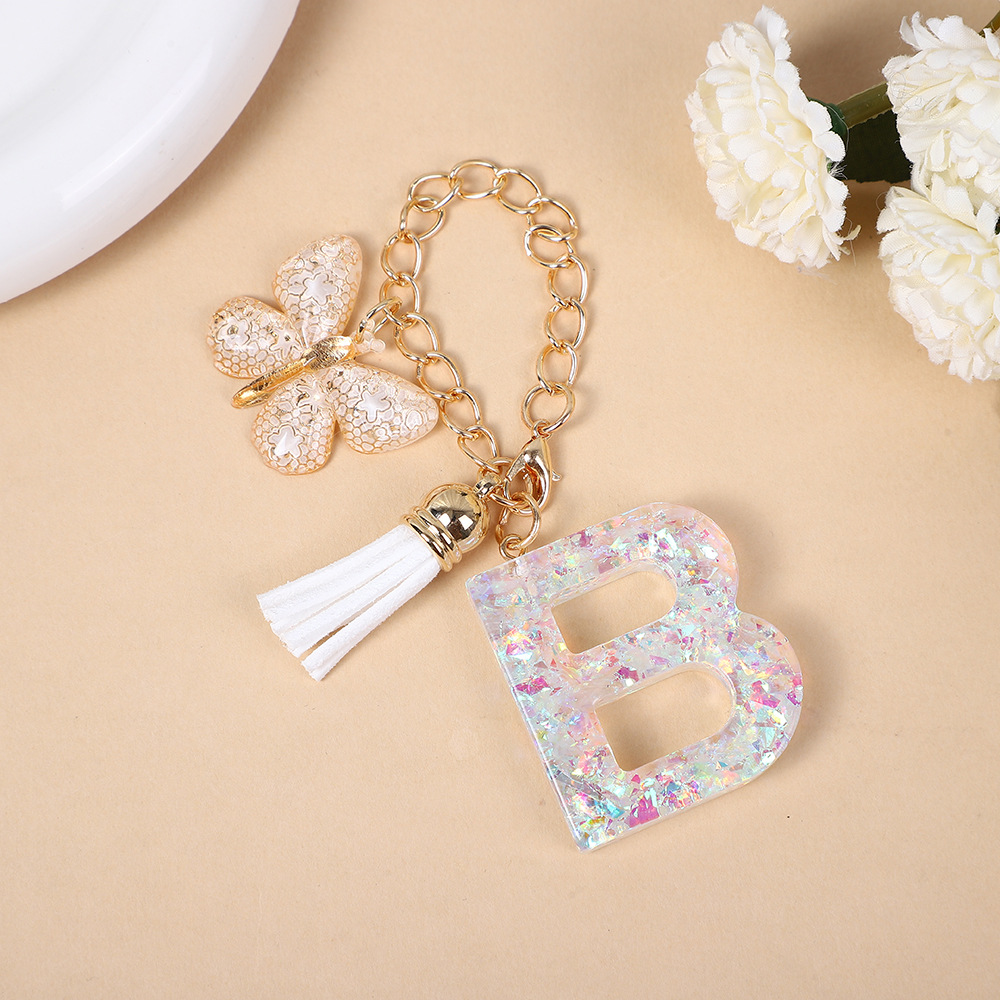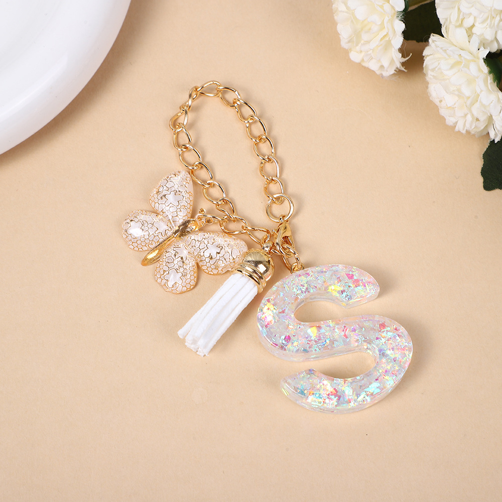 공장 도매 수지 스팽글 26 글자 키 체인 남성 및 여성 가방 스탠리 대형 컵 핸들 교수형 체인스토어 가기