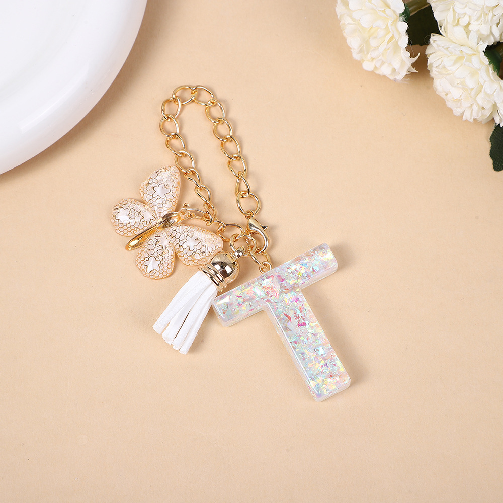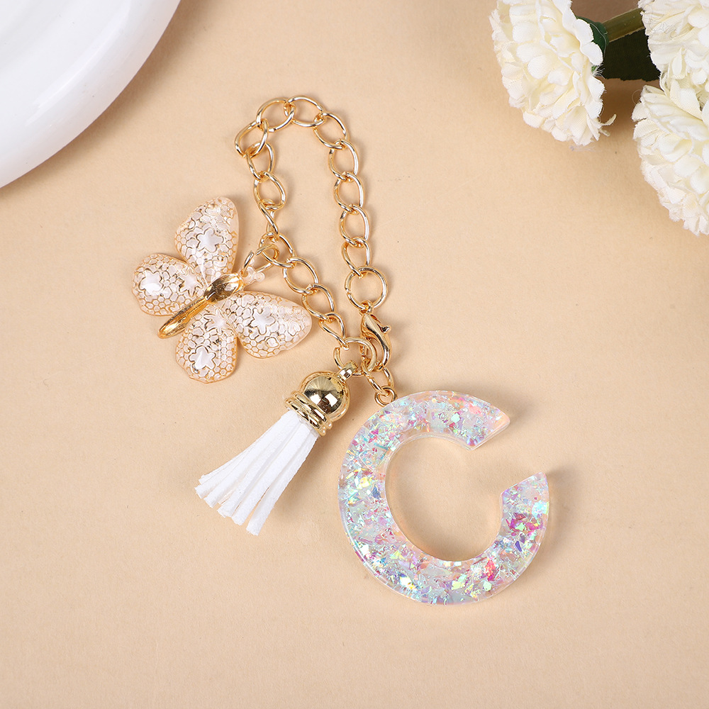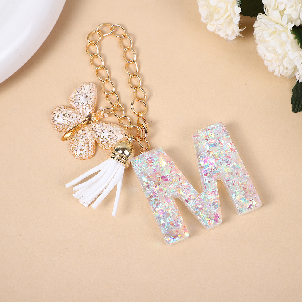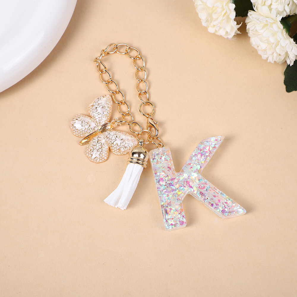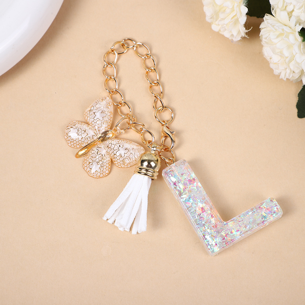 공장 도매 수지 스팽글 26 글자 키 체인 남성 및 여성 가방 스탠리 대형 컵 핸들 교수형 체인스토어 가기