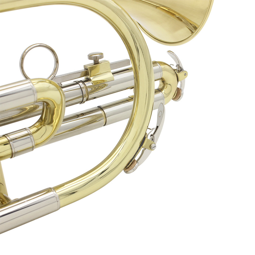 用途/优点:专业的Bb扁短号,由高品质黄铜制成,涂金漆。做工精致,吹奏出的音调温暖而柔和。随附手套,清洁布,润滑油。适合初学者。