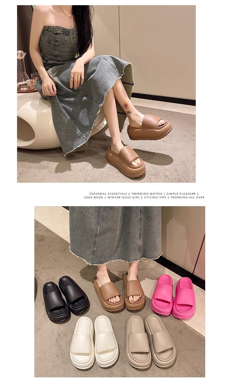새로운 슬리퍼 여성용 높이 증가 의상 여름 하이힐이 두꺼운 미끄럼 방지 샌들과 슬리퍼 인터넷-유명한 똥 느낌 비치 슬리퍼