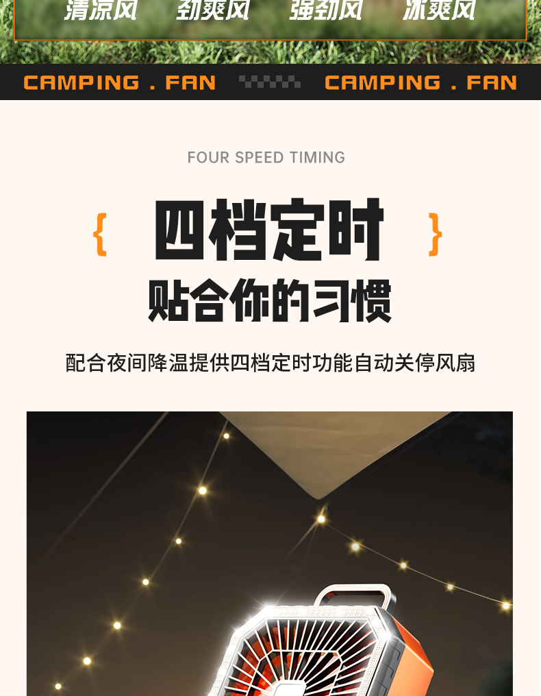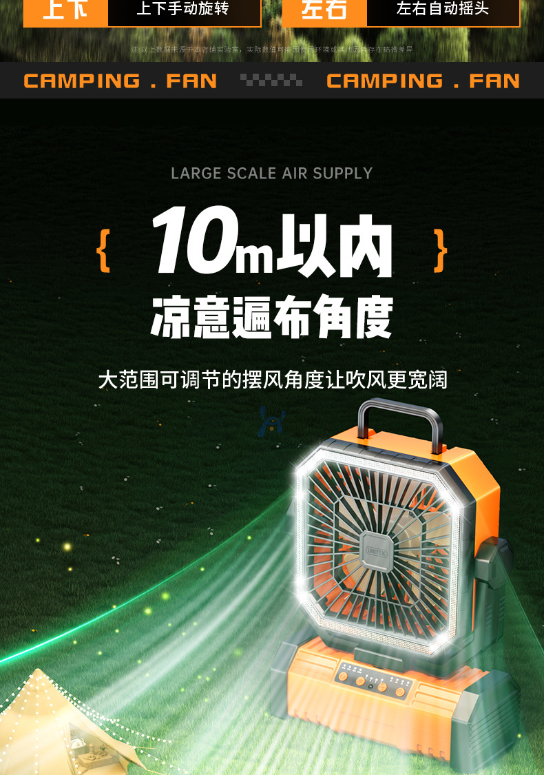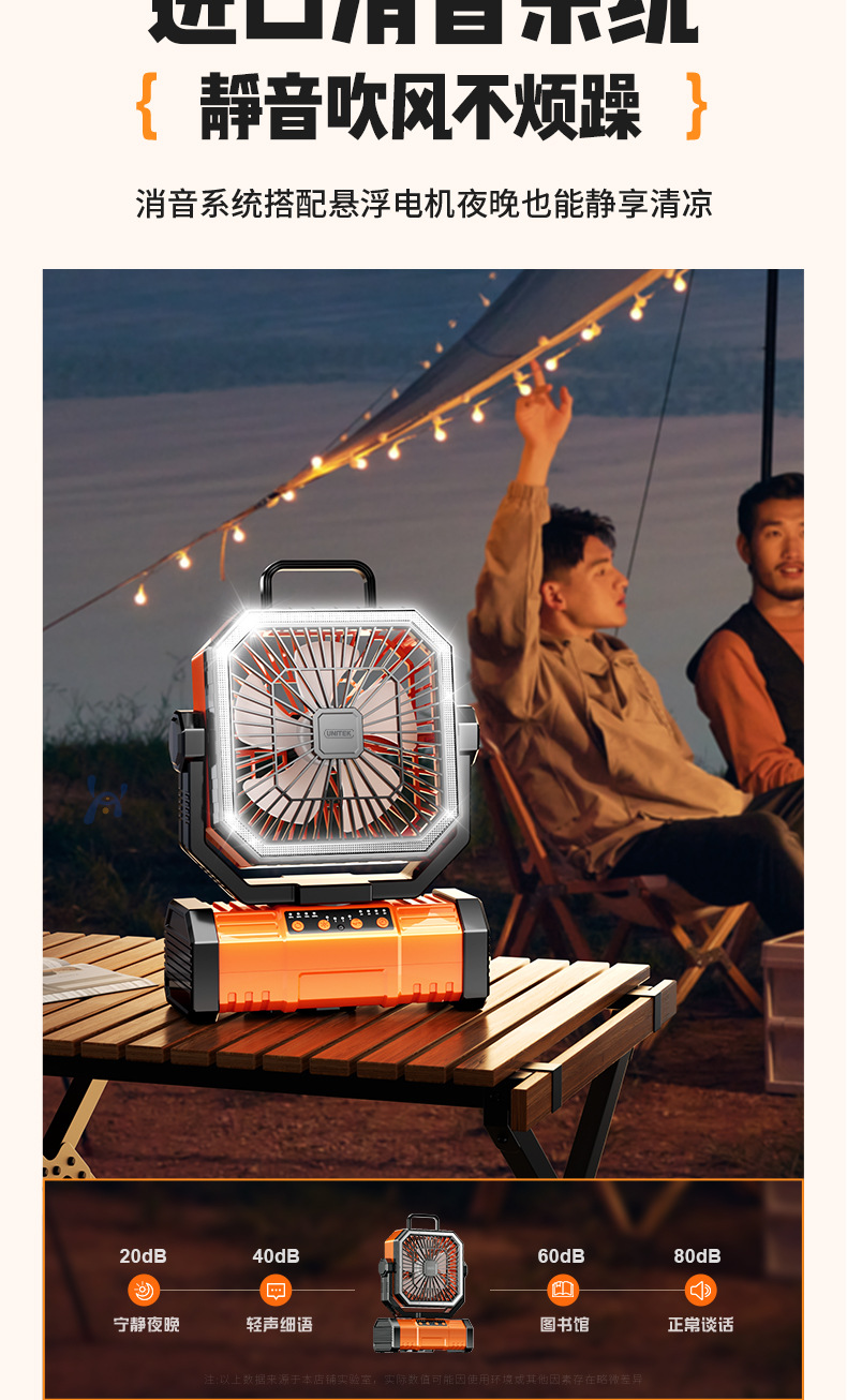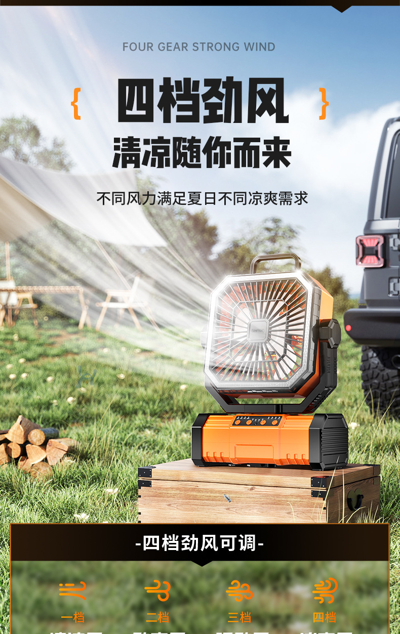 국경 간 야외 캠핑 팬 조명 긴 배터리 수명 캠핑 팬 기숙사 데스크탑 USB 이동 헤드 충전 팬스토어 가기