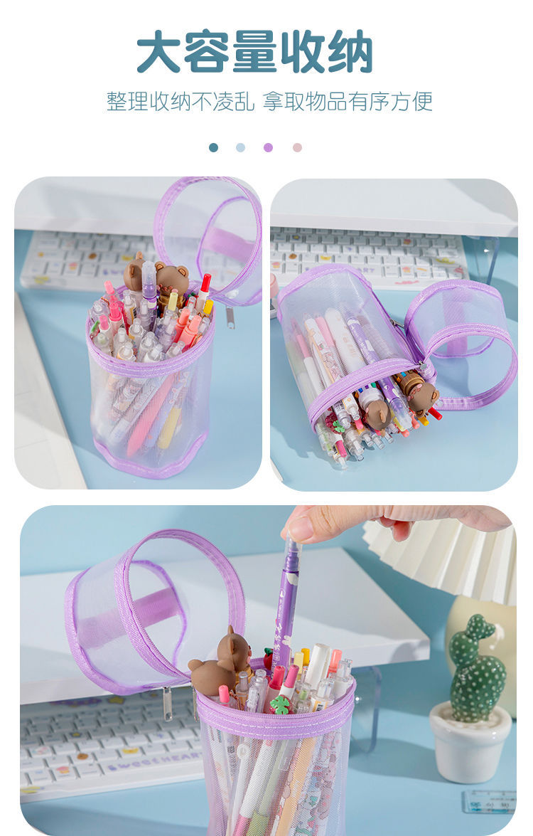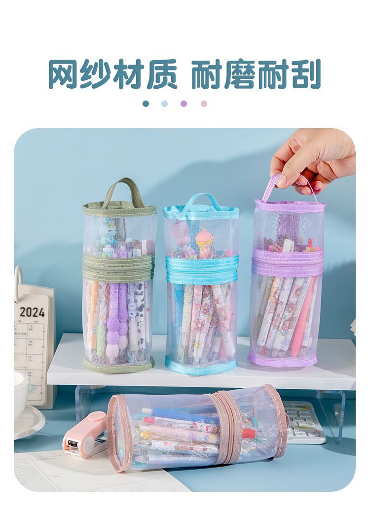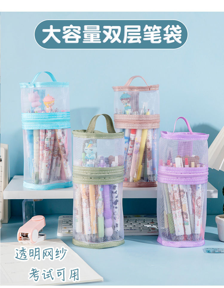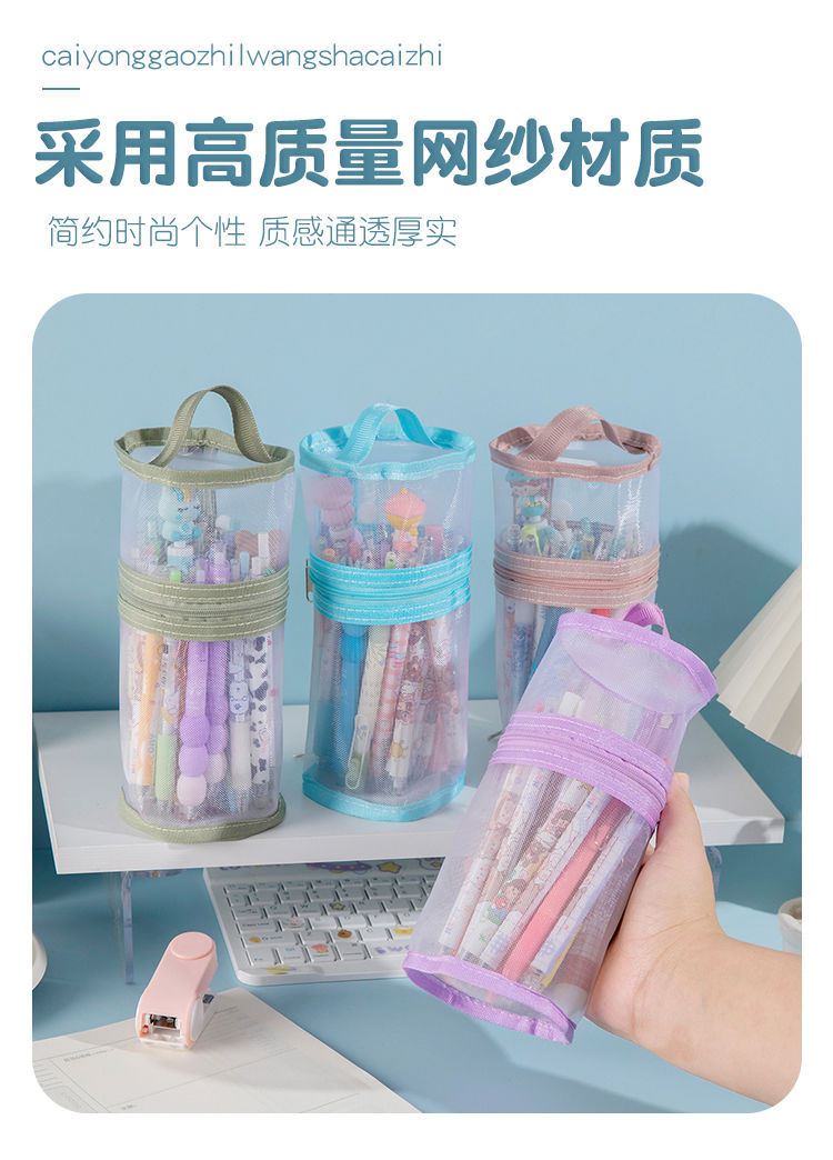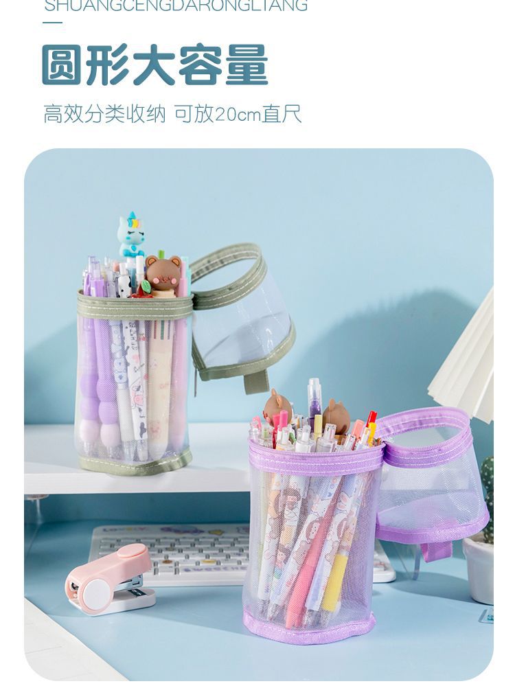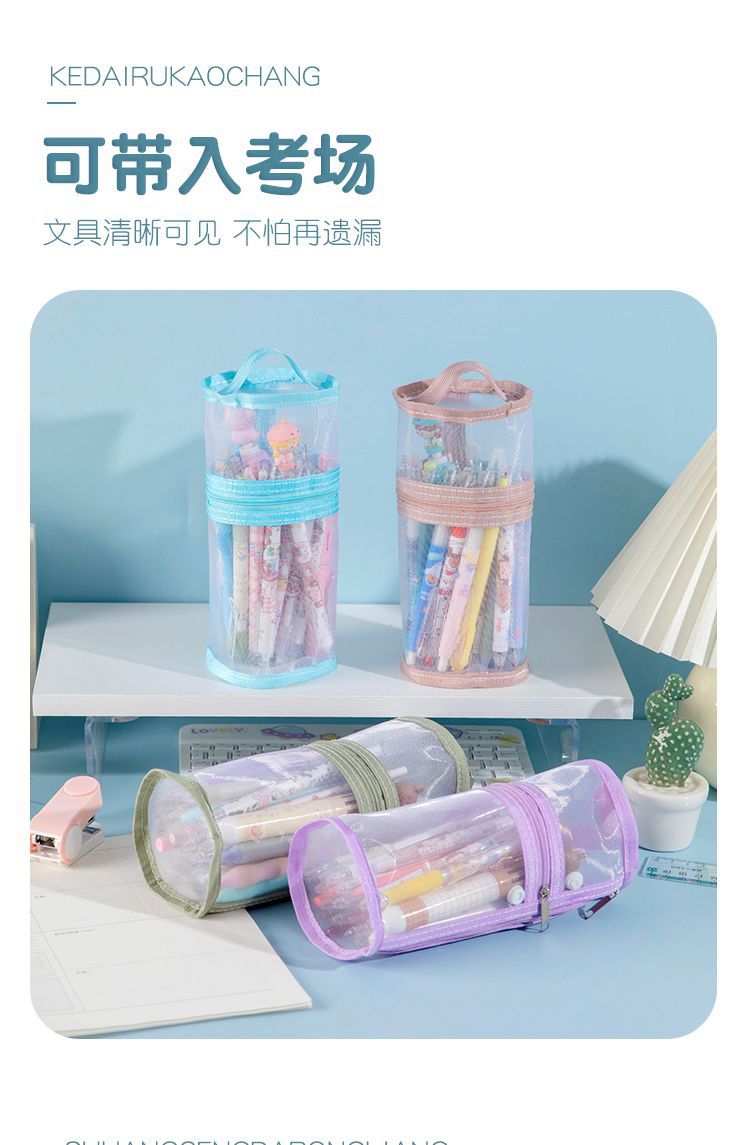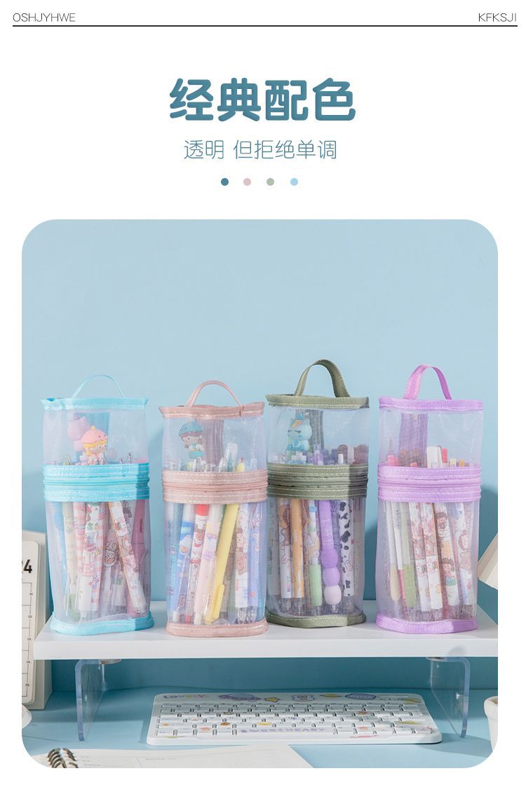투명한 연필 케이스 높은 아름다움 가치 간단한 연필 새로운 스타일 문구 케이스 Ins 문구류 학생들을위한 대용량 스탠드 업 연필 케이스스토어 가기