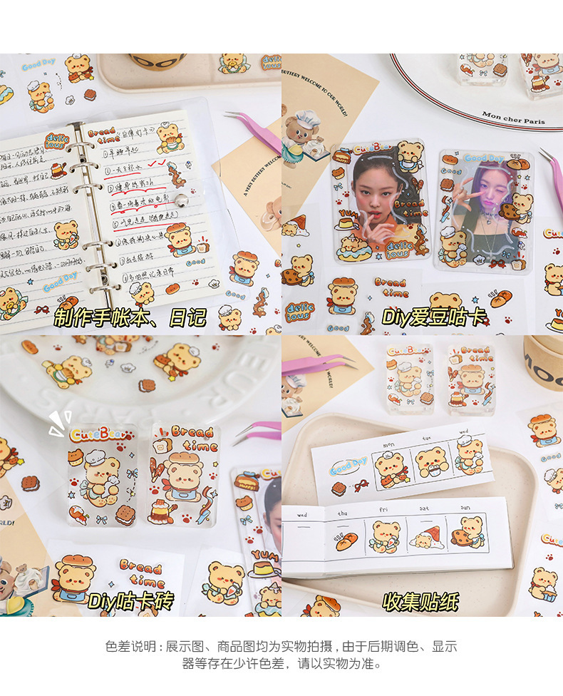 귀여운 우유 버터 곰 애완 동물 손 계정 스티커 에 바람 만화 방수 손 계정 diy 장식 소재 작은 스티커스토어 가기