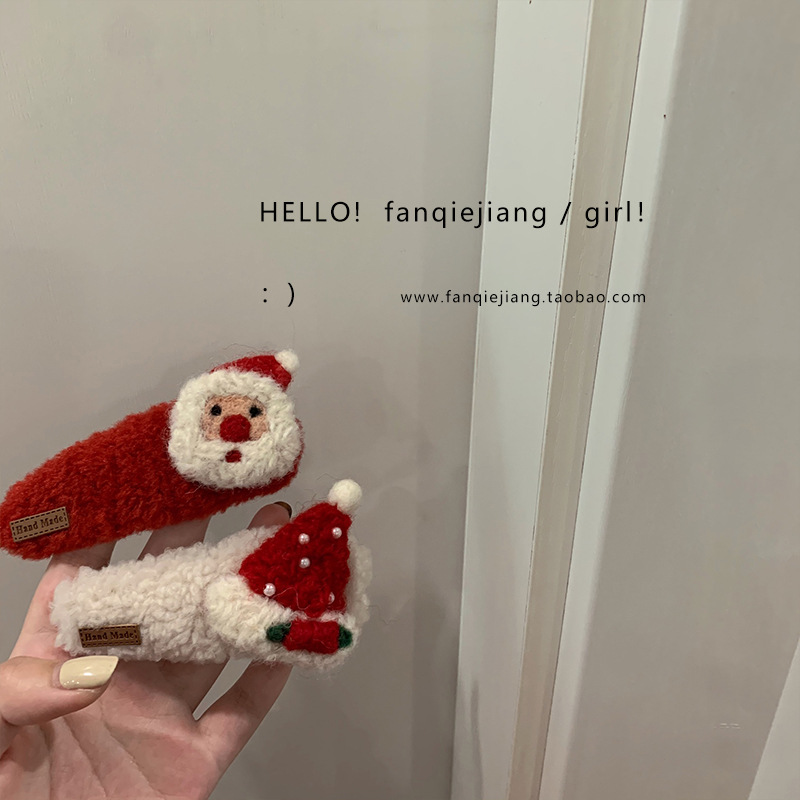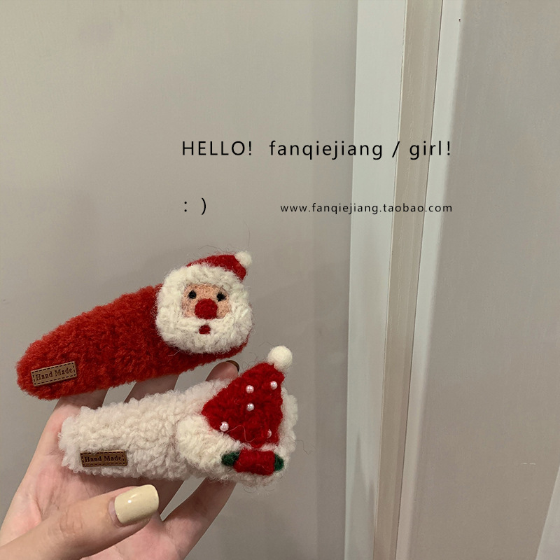 2024 크리스마스 양고기 모피 헤어핀 여성의 겨울 머리 쪽 뒷면 겨울 뱅 클립 헤어 액세서리 머리 머리스토어 가기