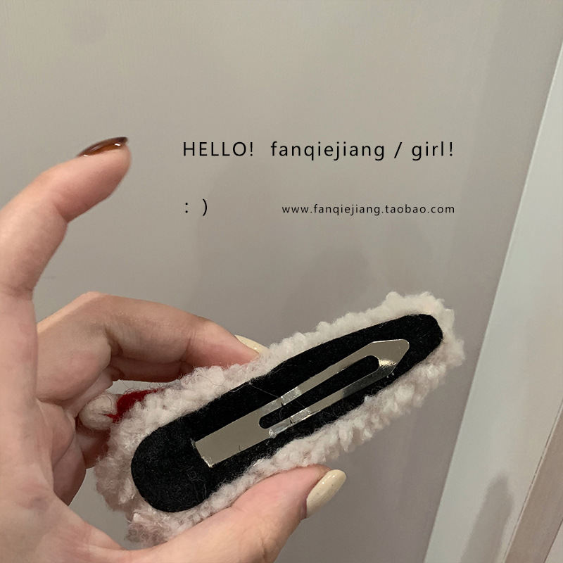 2024 크리스마스 양고기 모피 헤어핀 여성의 겨울 머리 쪽 뒷면 겨울 뱅 클립 헤어 액세서리 머리 머리