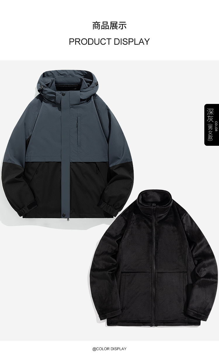 야외 재킷 남성과 여성의 3 대 1 분리 가능한 방풍 방수제 등산 세트 캐주얼 컬러 블록 재킷 코트 남성