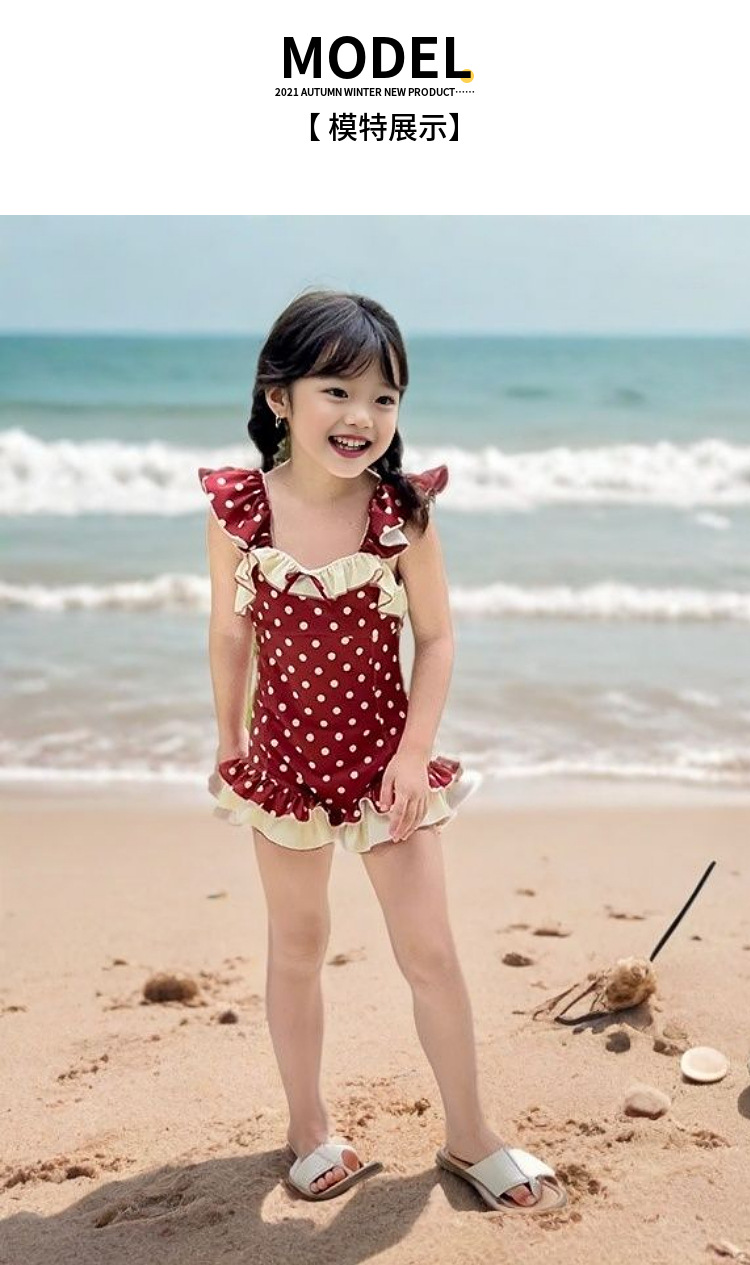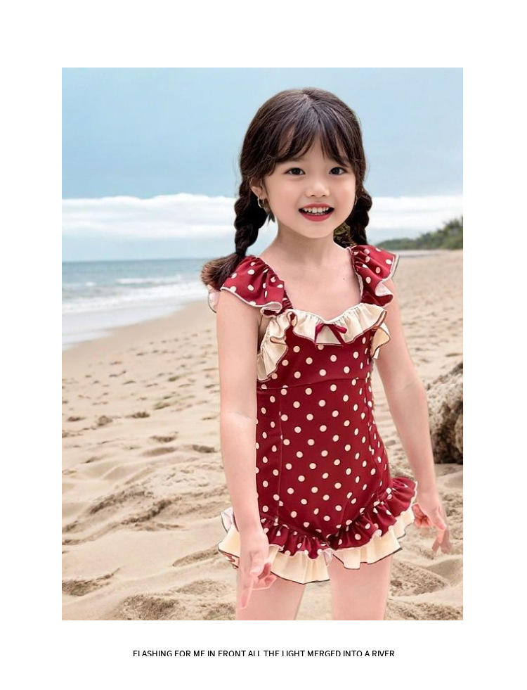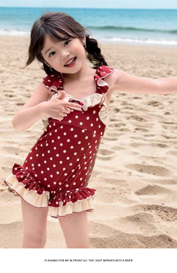 여아 수영복 아동용 원피스 2026년 신상 인기상품 어린 소녀용 속건성 물방울 무늬 백리스 스윗 스타일 중소형 아동 수영복