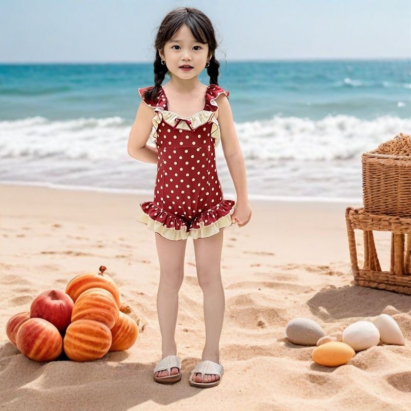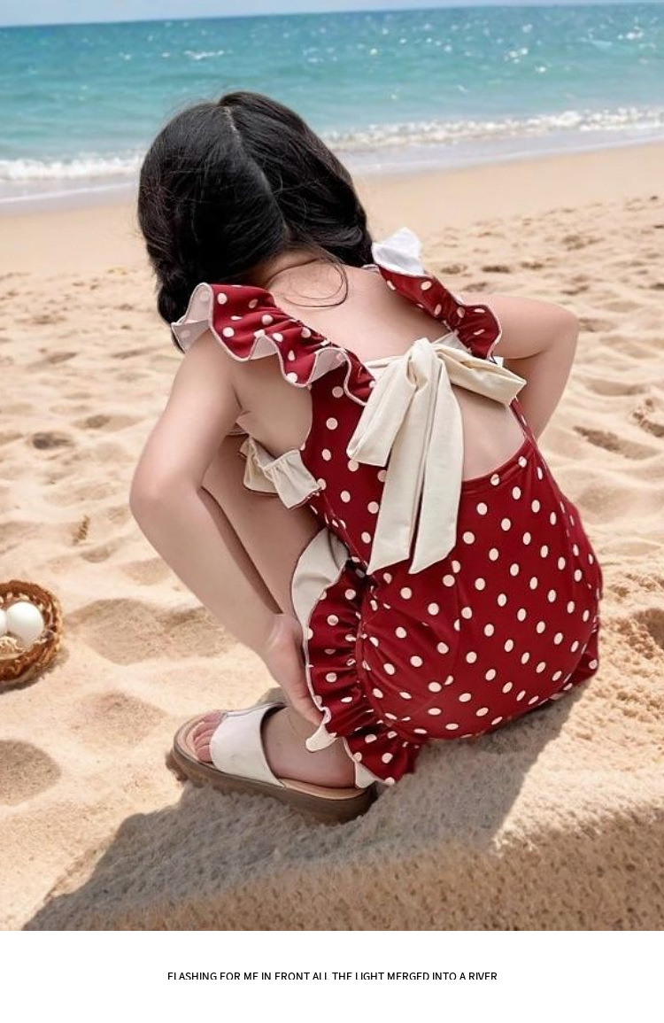 여아 수영복 아동용 원피스 2026년 신상 인기상품 어린 소녀용 속건성 물방울 무늬 백리스 스윗 스타일 중소형 아동 수영복스토어 가기