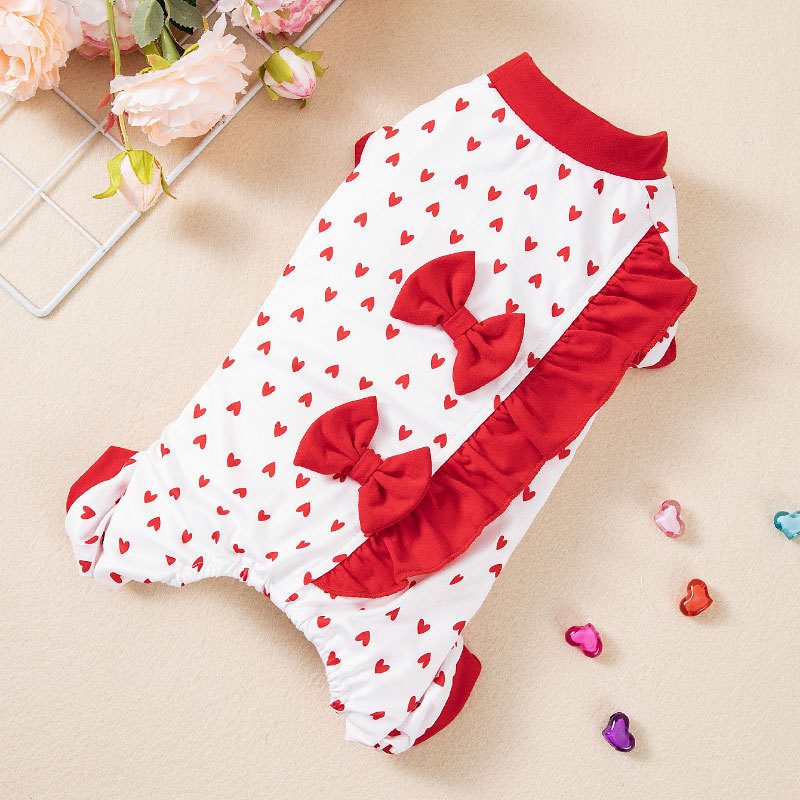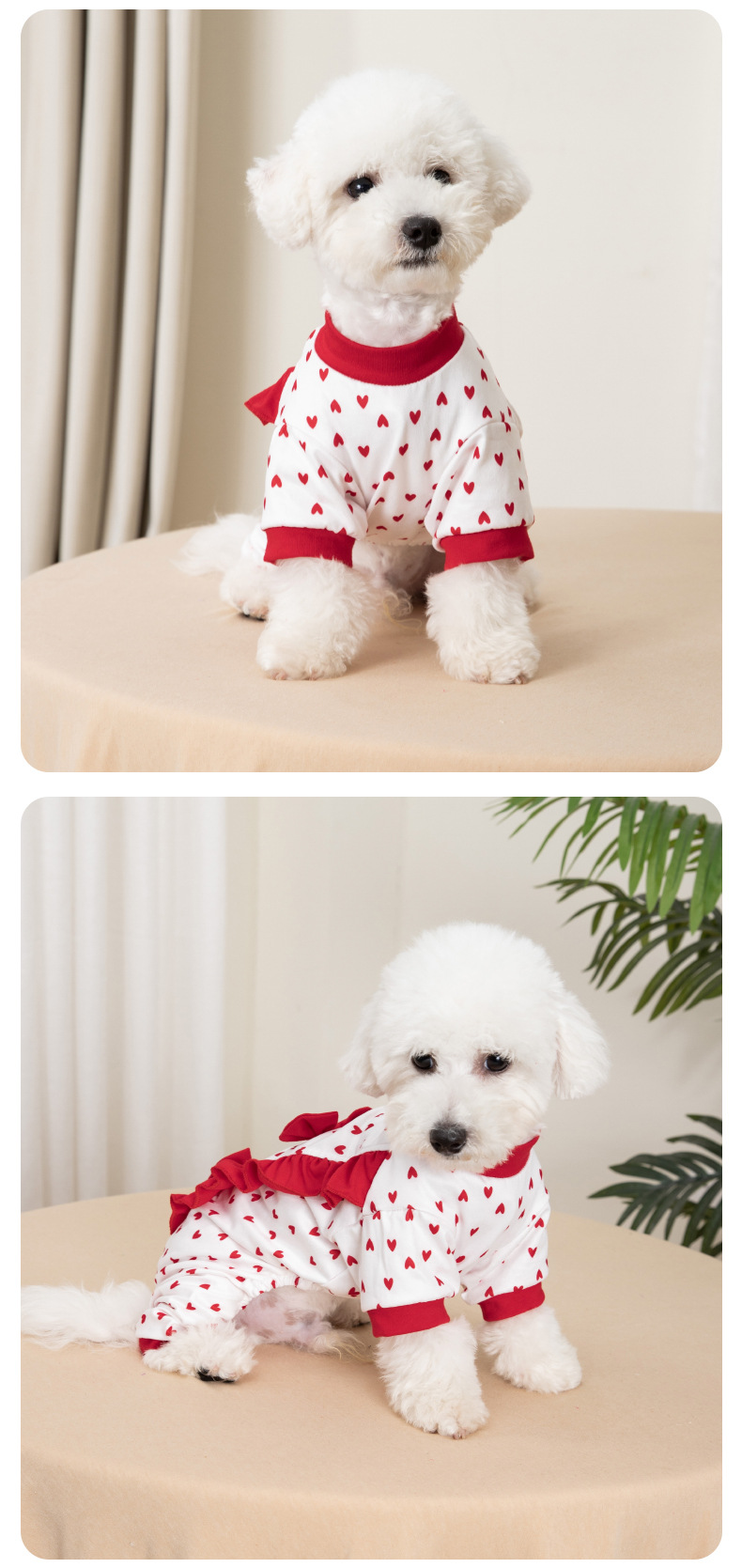국경 간 애완 동물 의류 봄과 가을 중소 개 사랑 전체 인쇄 네 다리 옷 개 매일 의상