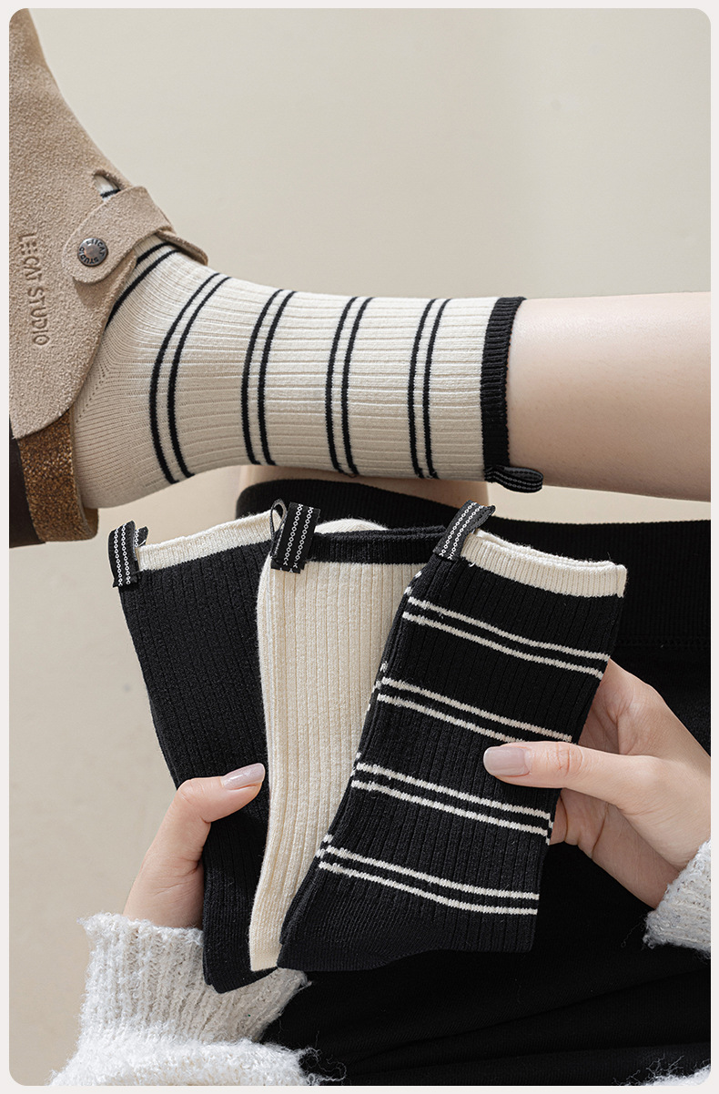 줄무늬 양말 어린이 가을 및 겨울 중간 길이 양말, 비르 칸 신발 포장 스타킹 Zhuji Hosiery와 함께 유행하는 한국 스타일 천 라벨 스타킹스토어 가기