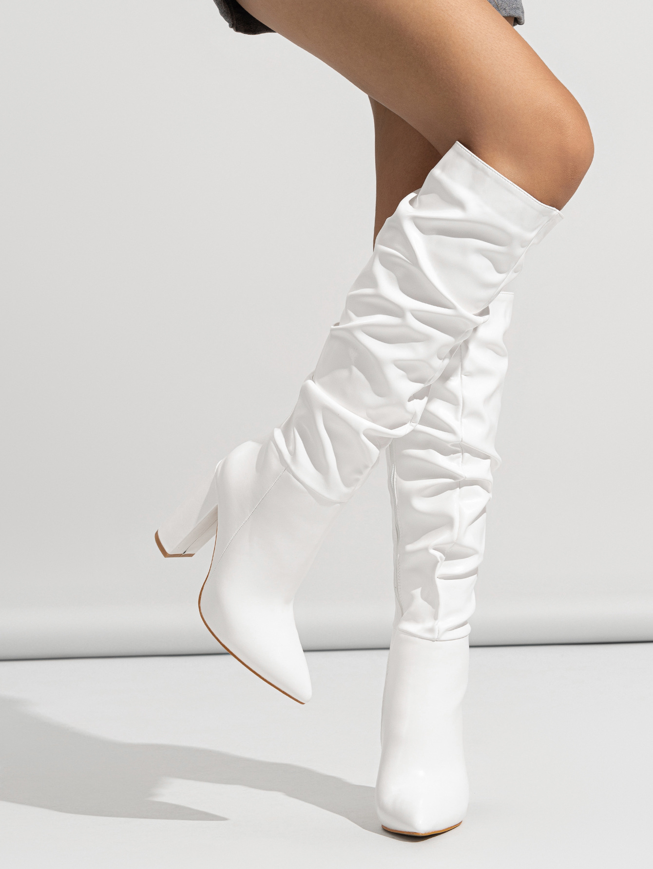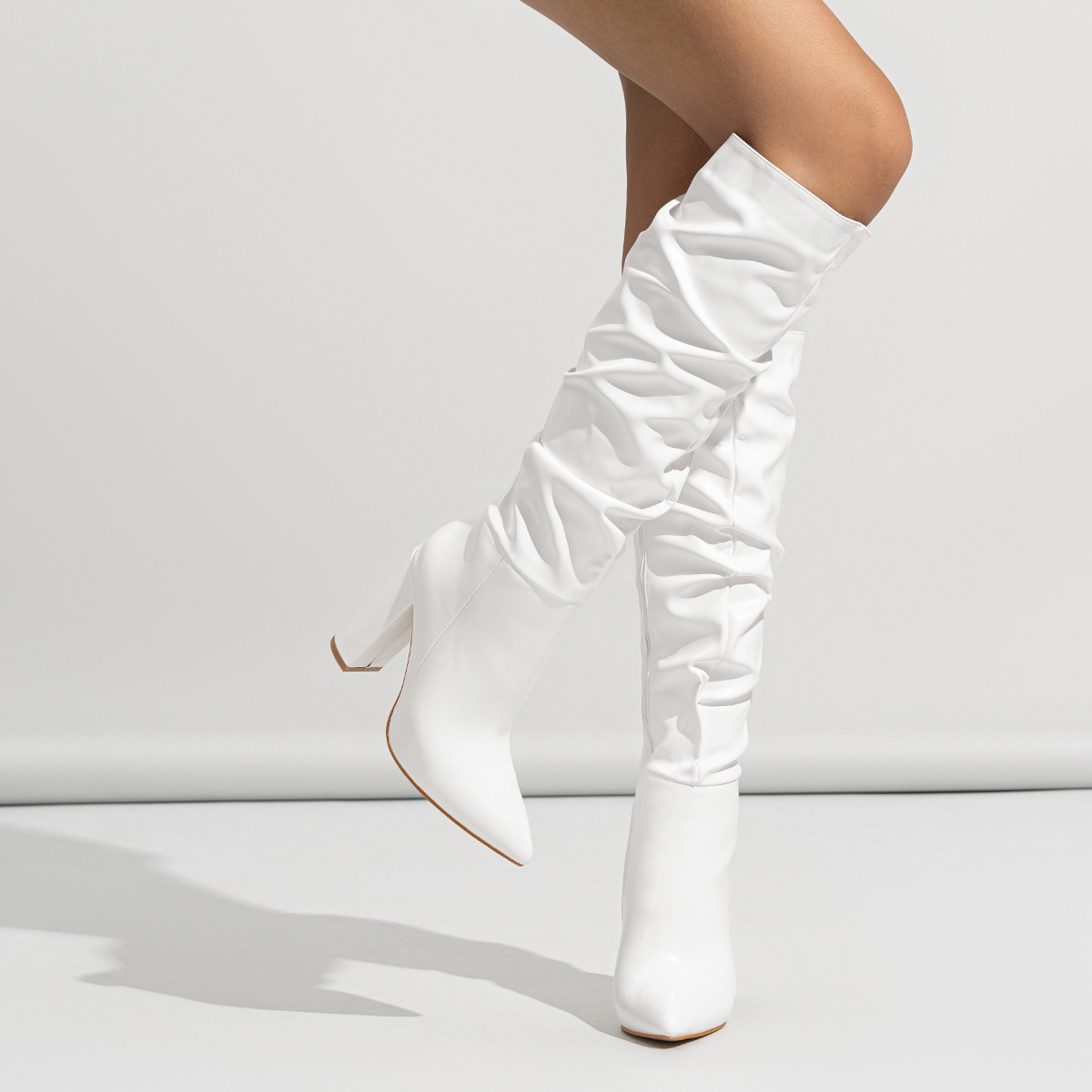 국경 간 대외 무역 새로운 뾰족한 두꺼운 발 뒤꿈치 여성 부츠 패션은 지퍼 패션 부츠 플러스 사이즈 알몸 부츠 내부의 천연 주름을 지적했습니다.스토어 가기
