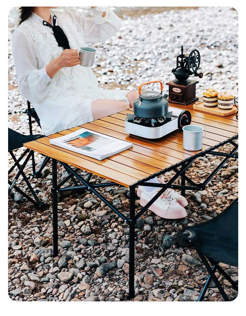유행 간단한 접이식 야외 계란 롤 테이블 야시장 스톨 접이식 테이블 금속 휴대용 캠핑 요리 차 테이블