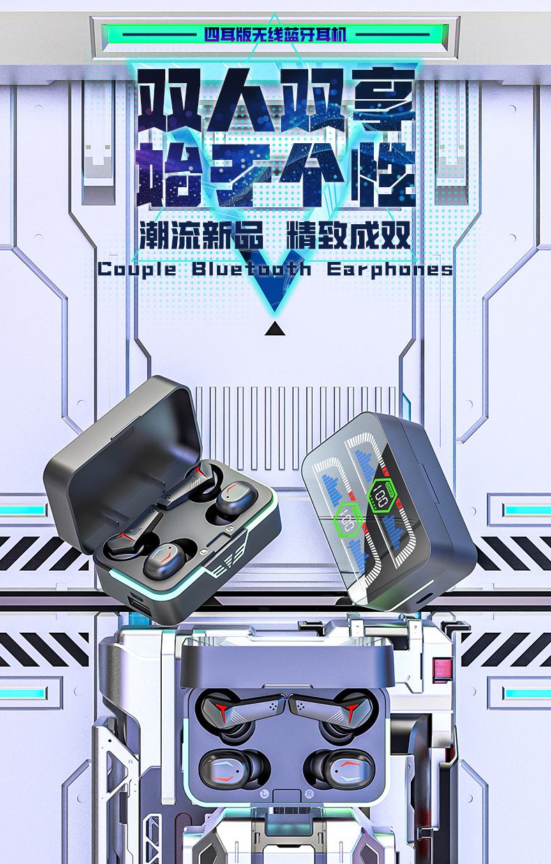 새로운 국경 간 개인 모델 DX-42 커플 4 귀 블루투스 헤드셋 무선 바이노럴 인 이어 게임 스포츠 소음 감소