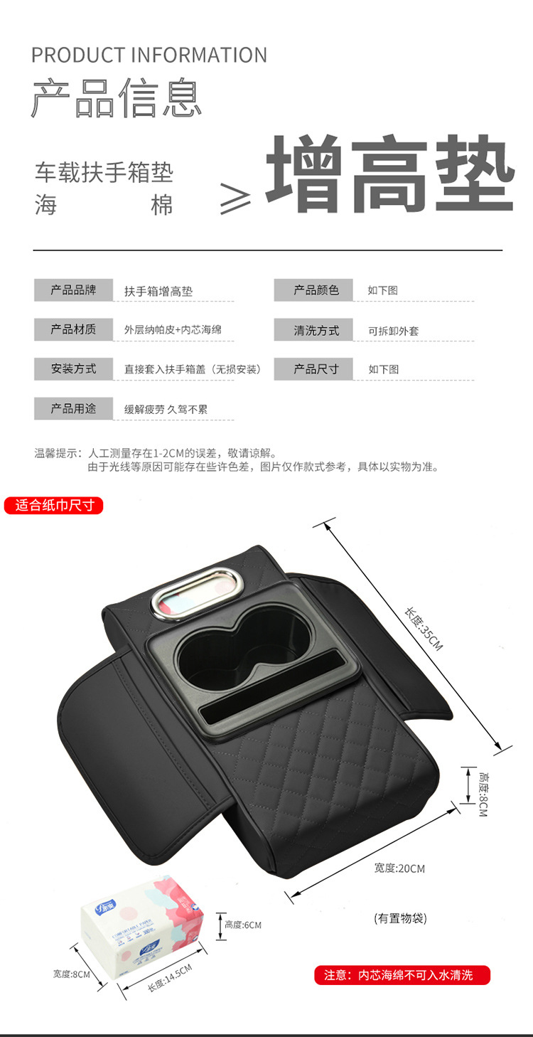 자동차 팔걸이 상자 패드 부스터 패드 자동차 다기능 티슈 박스 사이드 스토리지 백 창조적 인 컵 홀더 팔걸이 패드