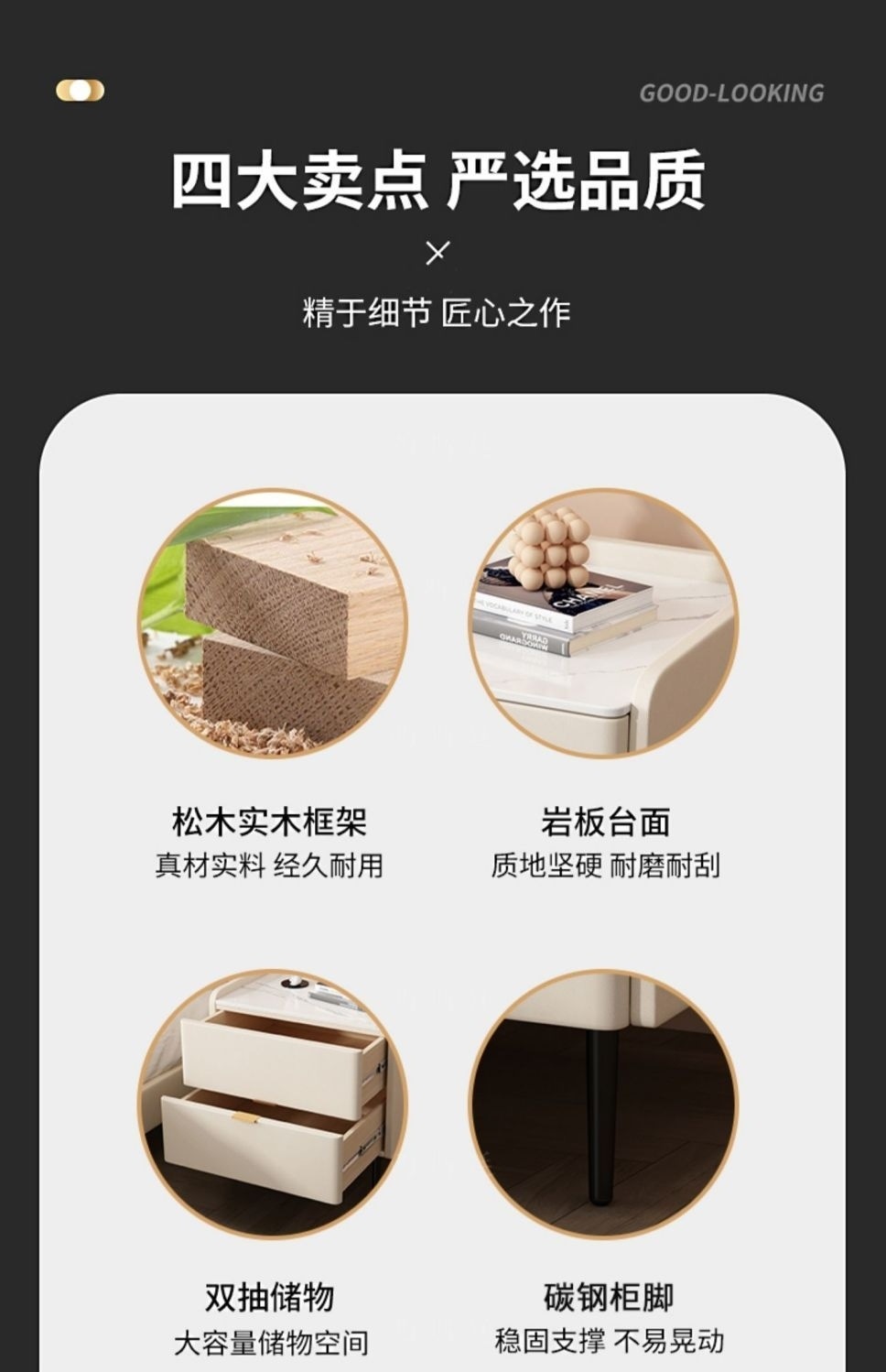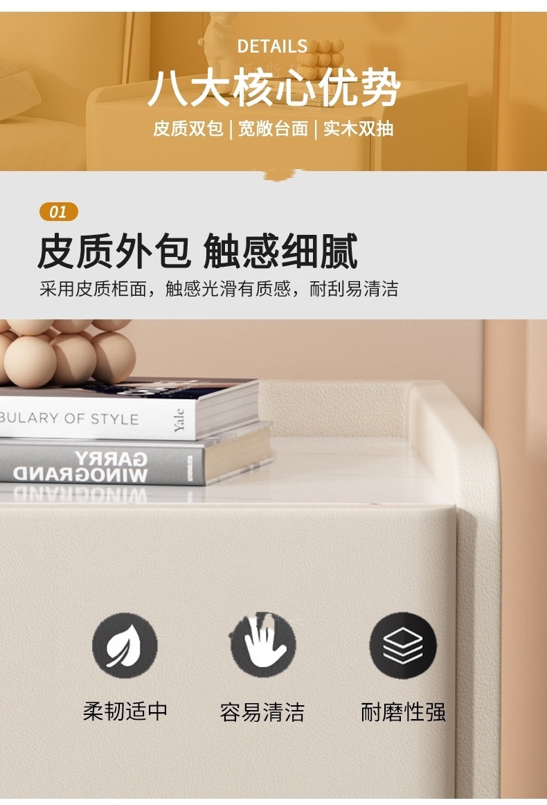 단단한 나무 침대 옆 테이블 사이버 인기 크림 스타일 빛 럭셔리 락 보드 가죽 매우 간단한 현대 침실 침실 보관 캐비닛