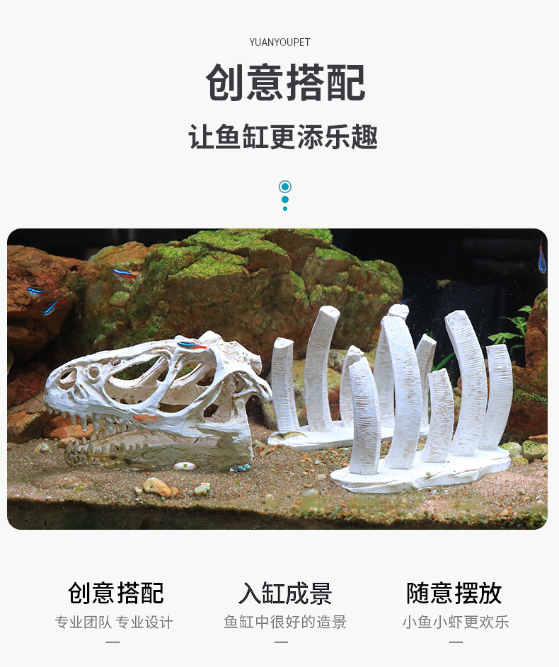 국경을 넘는 모형 공룡 두개골 피난처, 인공 수초와 조경, 어항 및 수족관 장식용 해골 장식품