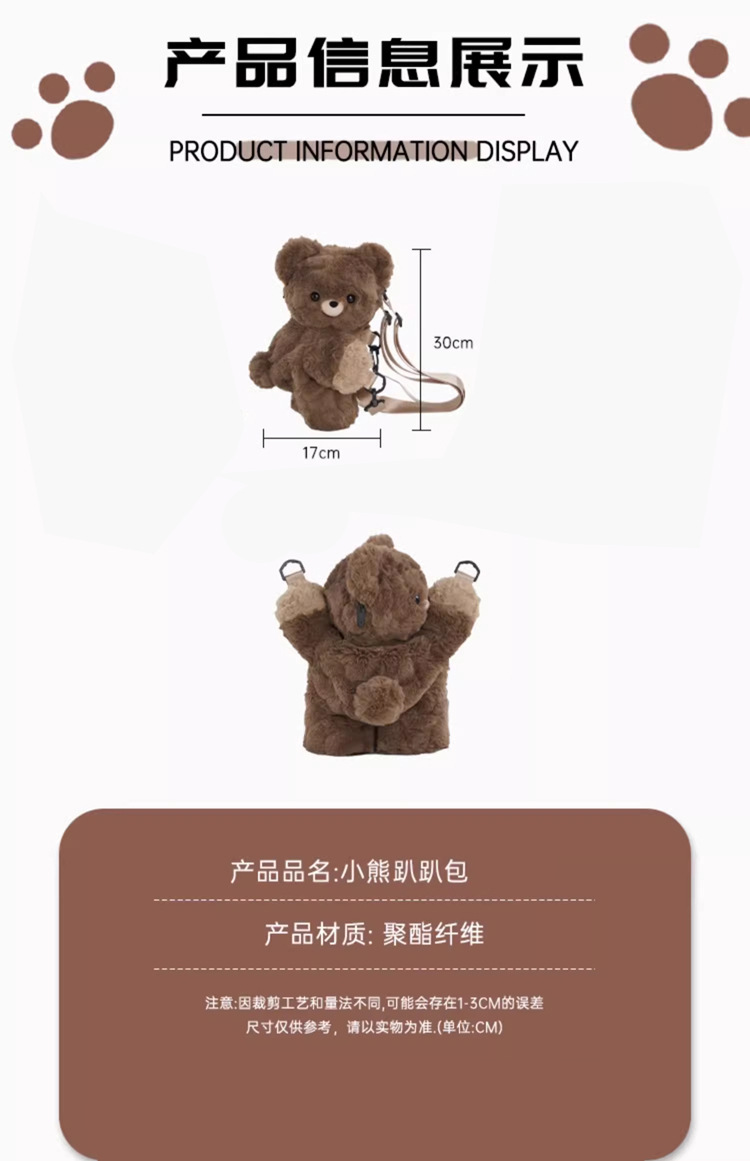 곰 봉제 엎드린 가방 인형 책가방 여성 생일 선물을 사랑할 수 있습니다스토어 가기