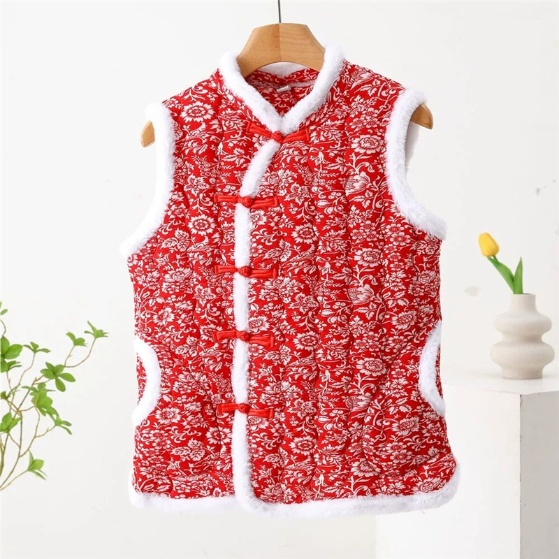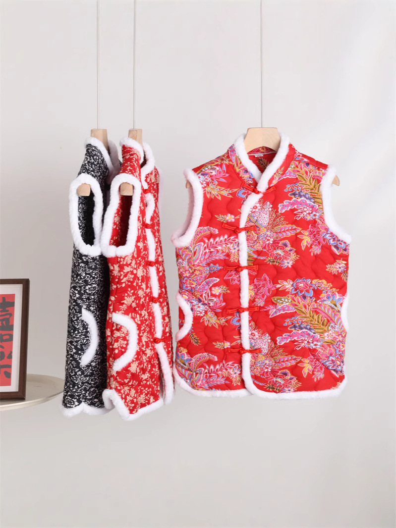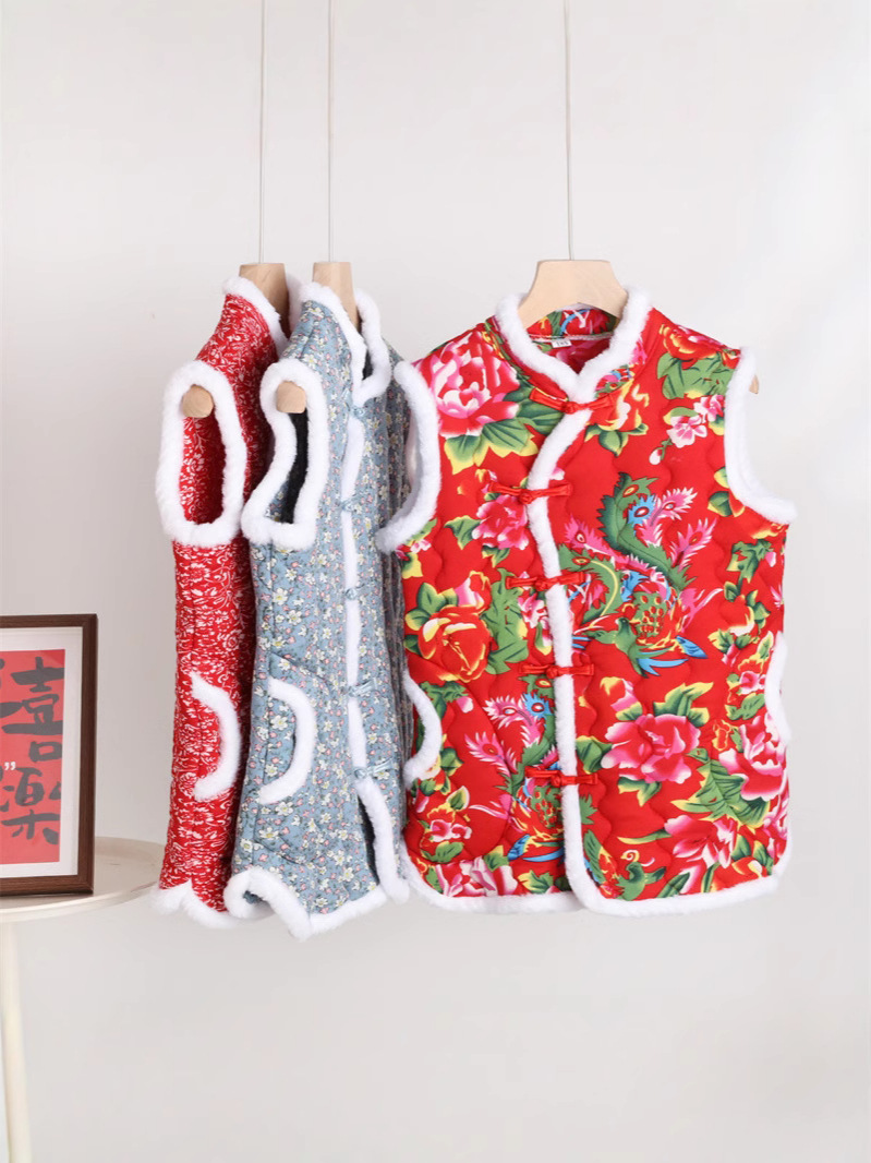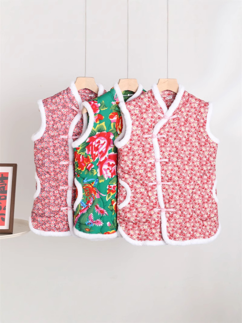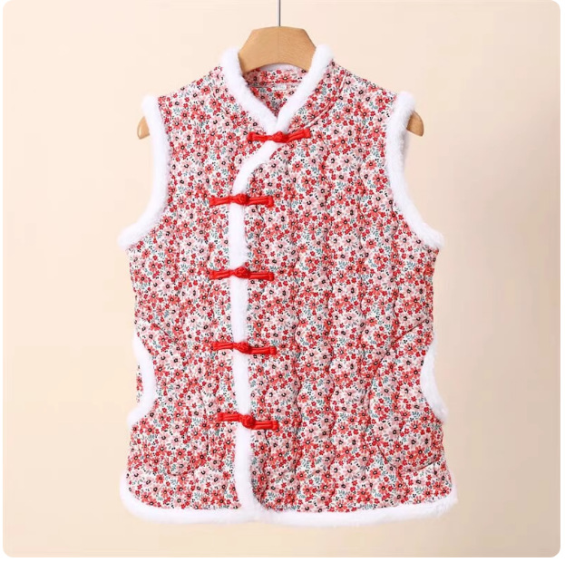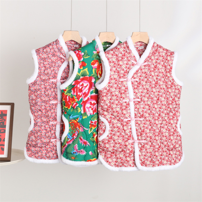 Guofeng Northeast Big Flower Vest 여성 겨울 여성 버튼 웨이스트 코트 코튼 탑으로 따뜻한 조끼스토어 가기