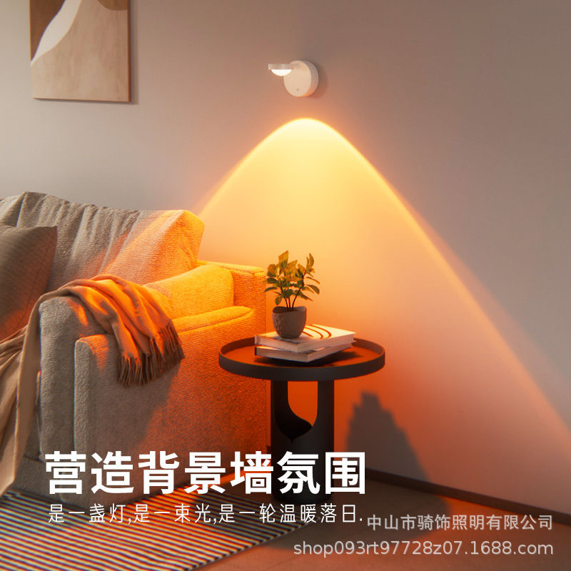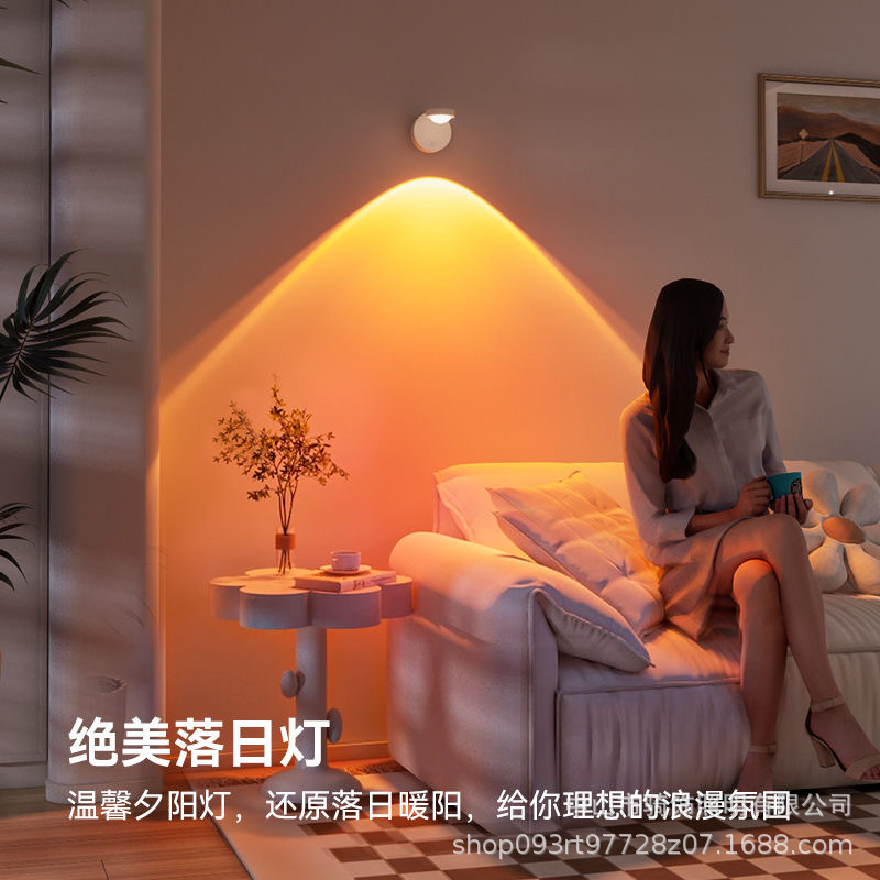 磁吸遥控充电日落夕阳壁灯免布线氛围无线遥控射灯卧室客厅背景墙