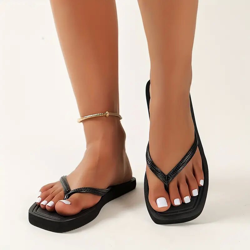 사각형 앞코 크로스보더 TEMU 여성용 슬리퍼, 심플한 단색 슬리퍼, 목욕, 해변, 바닷가에서의 여가용