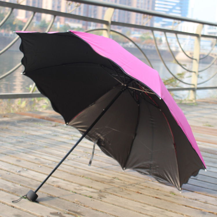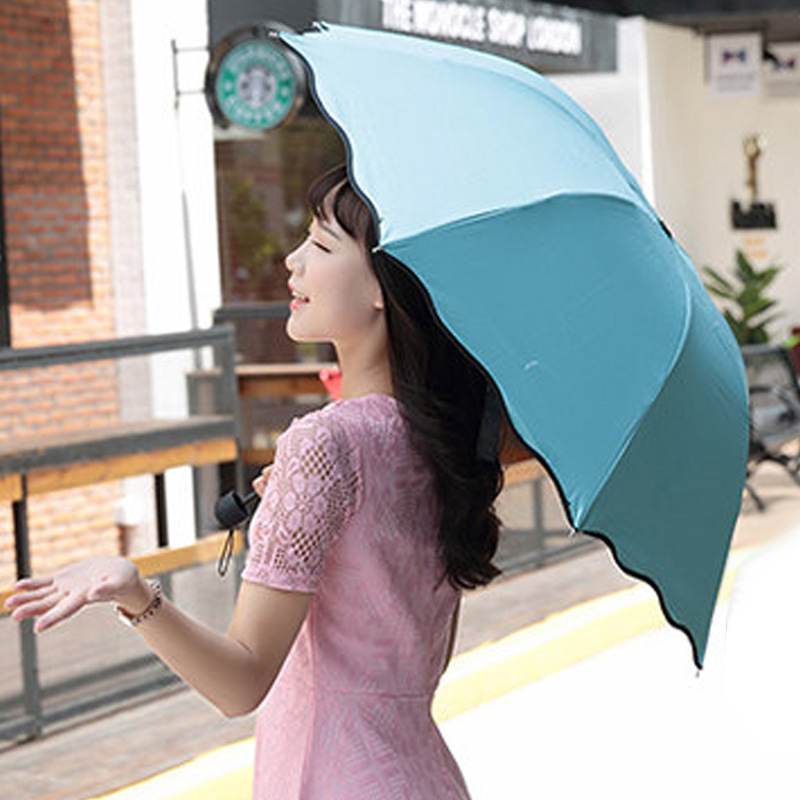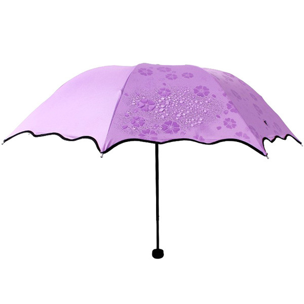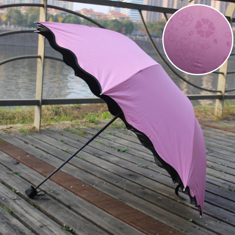 태양 보호 우산 물 꽃 피는 검은 접착제 맑은 우산 아폴로 3 배 접는 우산 인쇄 가능한 광고 우산 로고스토어 가기