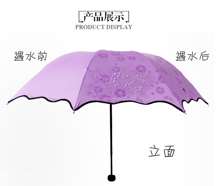 태양 보호 우산 물 꽃 피는 검은 접착제 맑은 우산 아폴로 3 배 접는 우산 인쇄 가능한 광고 우산 로고