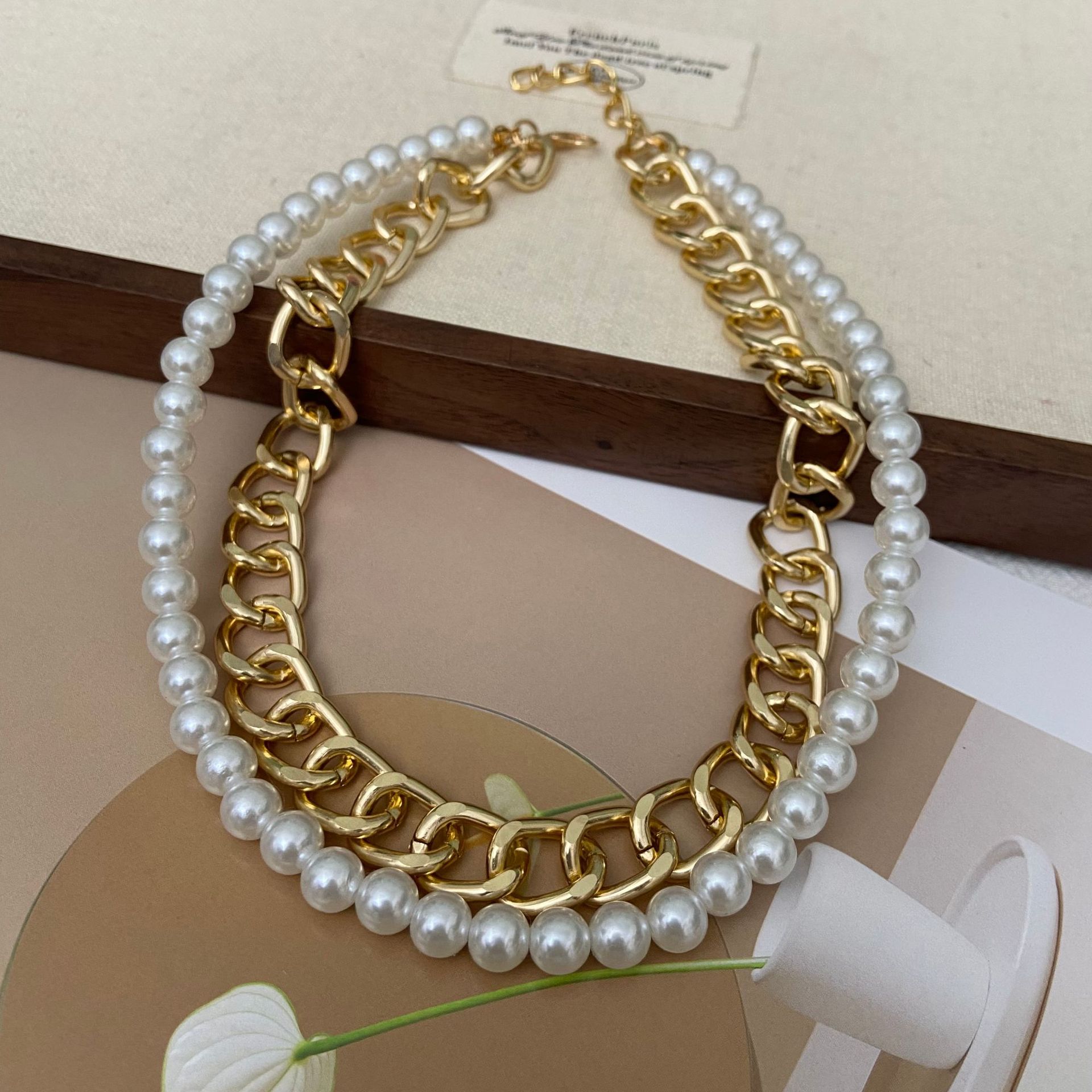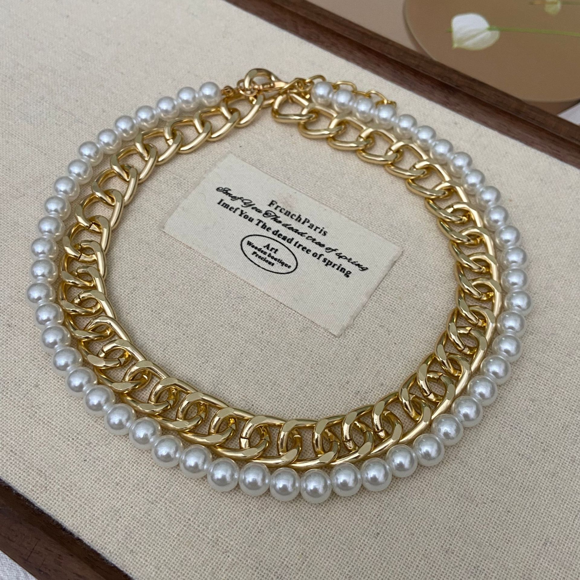 빈티지 라이트 럭셔리 모방 진주 트위스트 랩 더블 레이어 목걸이 여성용 틈새 하이 엔드 목걸이 유행 맞춤형 목걸이 트렌디스토어 가기