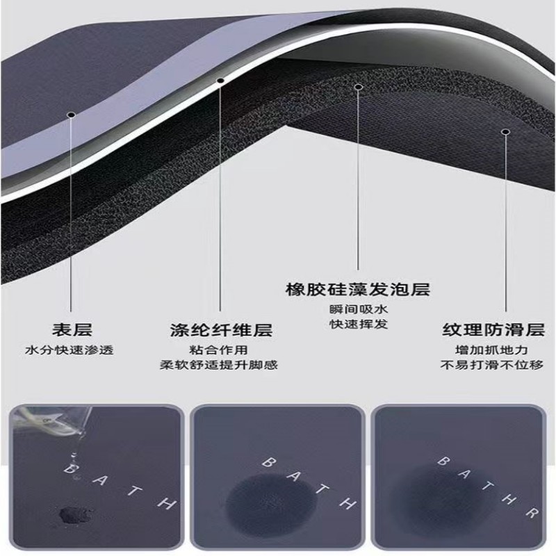 욕실 흡수성 매트 디 아톰 머드 구운 매트 화장실 발 매트 화장실 문 비 슬립 가정용 빠른 건조 욕실 매트