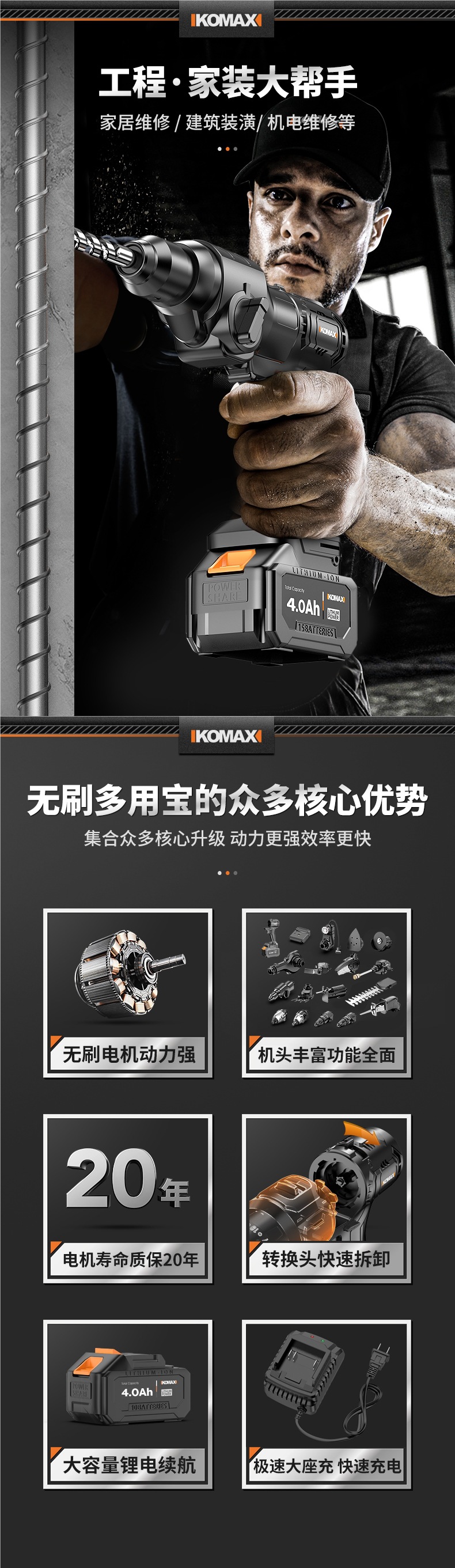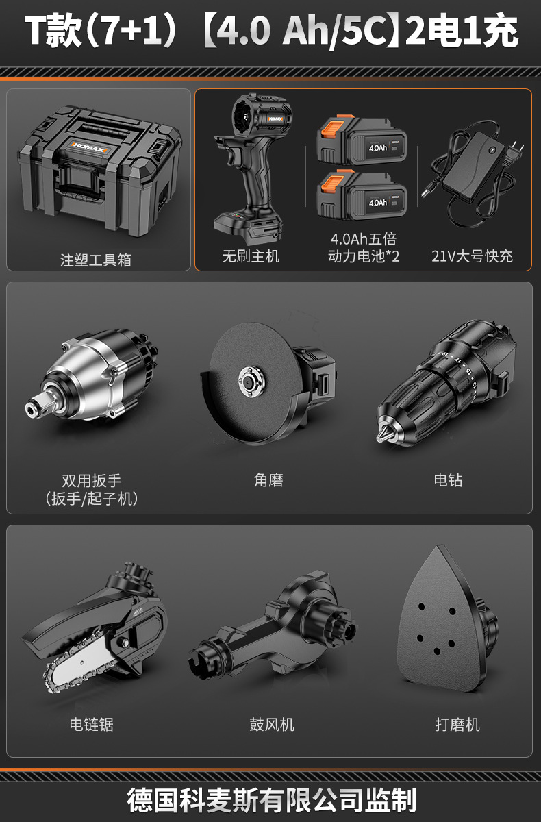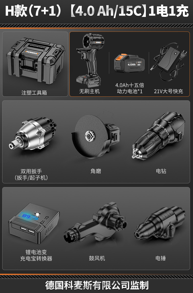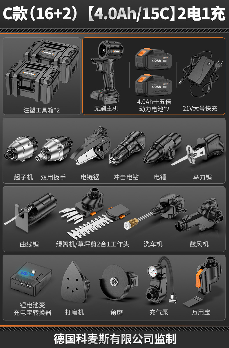 • 【4.0Ah/15C】배터리 2개 및 충전 브러시리스 호스트 1개